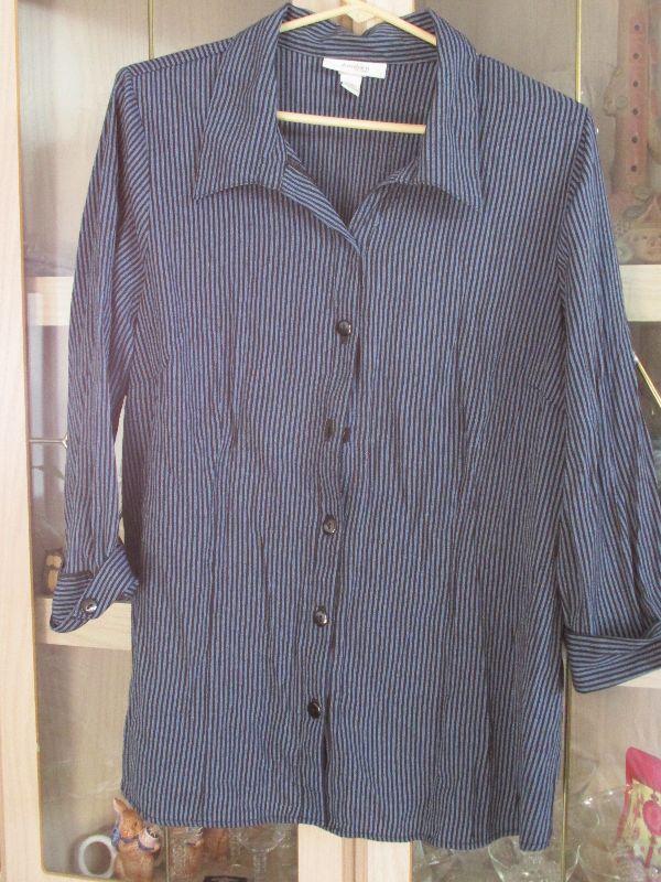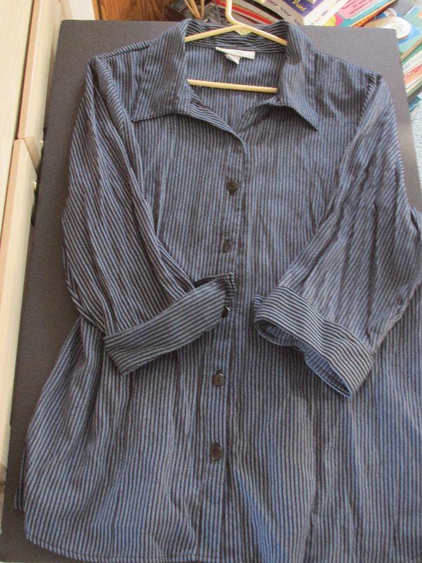 Blue and black Dress Barn stripped long sleeve button up shirt. Size 18/20. No significant wear noticed.