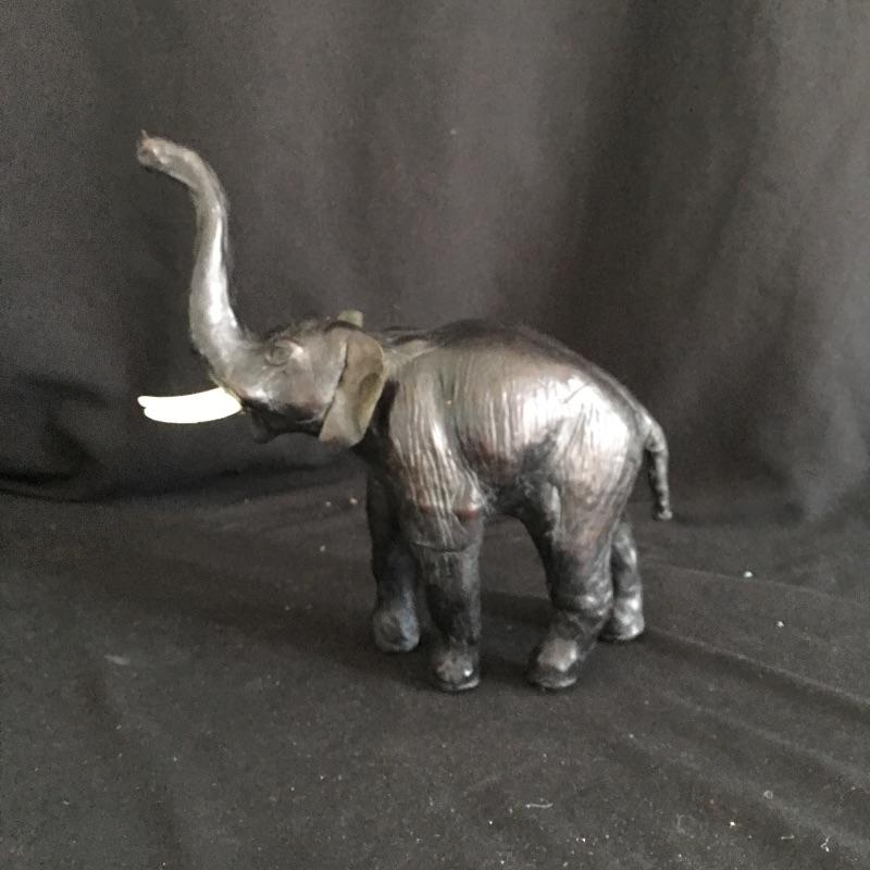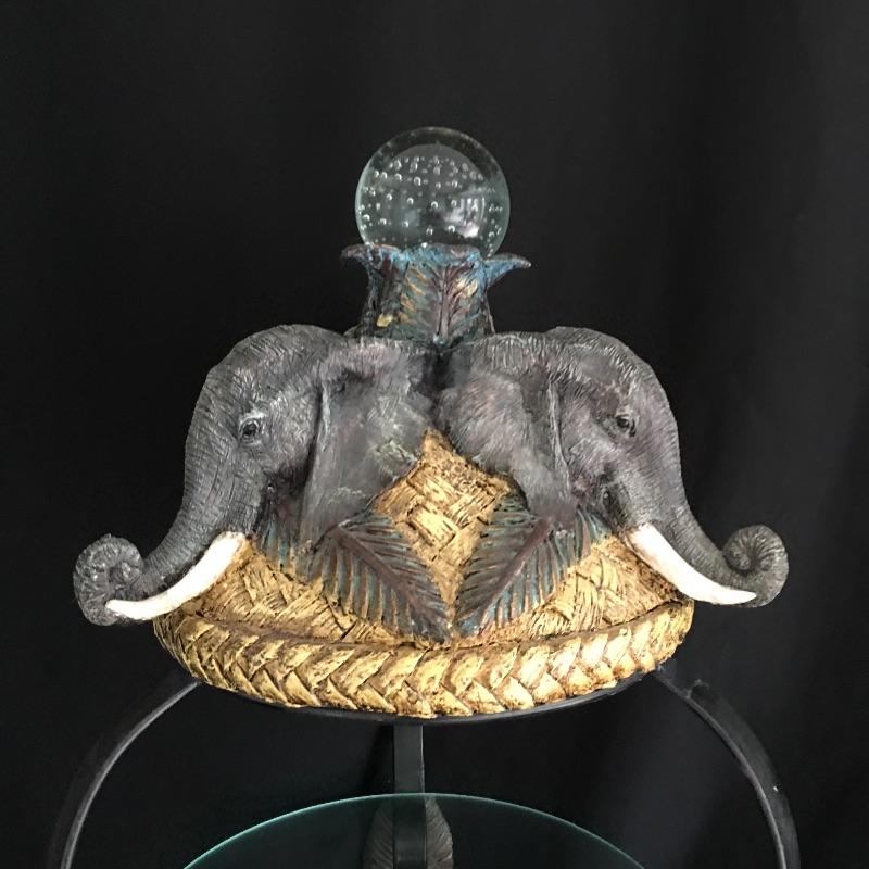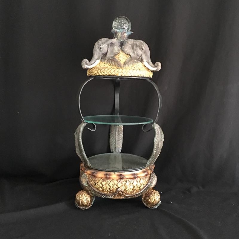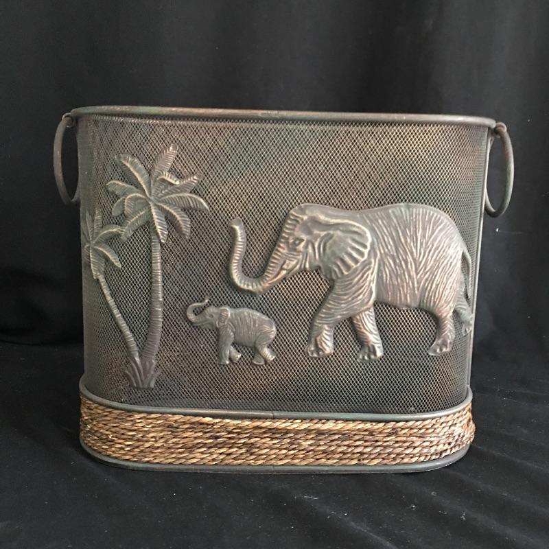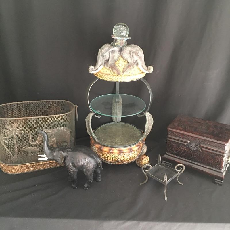 This collection of elephant decor is truly unique with items that are very unusual and hard to find including a wastebasket, display stand, statuette, small box and candle stand. Display stand measures 25.5” tall with a 10.5” D.