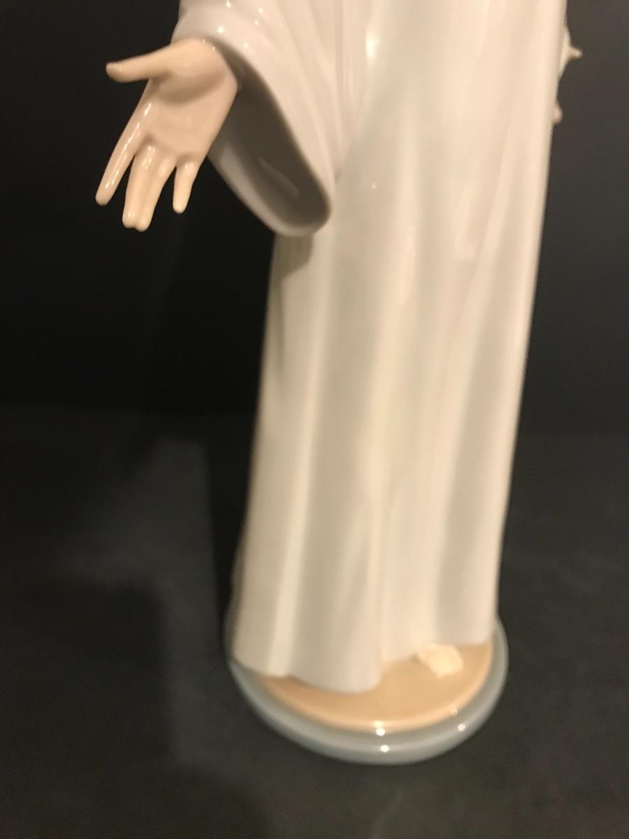 Lladro Large Jesus Figure #5167 AS-IS. Figurine has a broken and missing finger on the left hand. All items have been inspected and any damages or imperfections have been photographed and noted to the best of our knowledge and ability. It is the responsibility of the buyer to inspect all pictures, as they are the best representation of the items. The pictures show condition, measurements if taken, and what is included in the lot. Upon pickup, it is the responsibility of the buyer to inspect their items prior to leaving the premises. Once the items leave the premises, there will be no refunds or returns. Buyers are also responsible for bringing their own boxes and packing materials for their items. Thank you.
