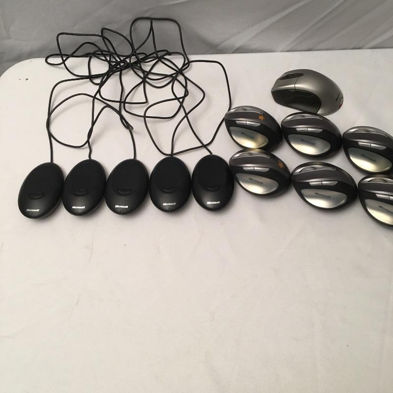 Microsoft laser mice. Lot include six Microsoft Natural Wireless laser mice 6000 with five Microsoft wireless mouse receiver v 1.0. Also includes one Microsoft Intellimouse Explorer without receiver.