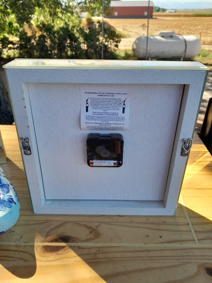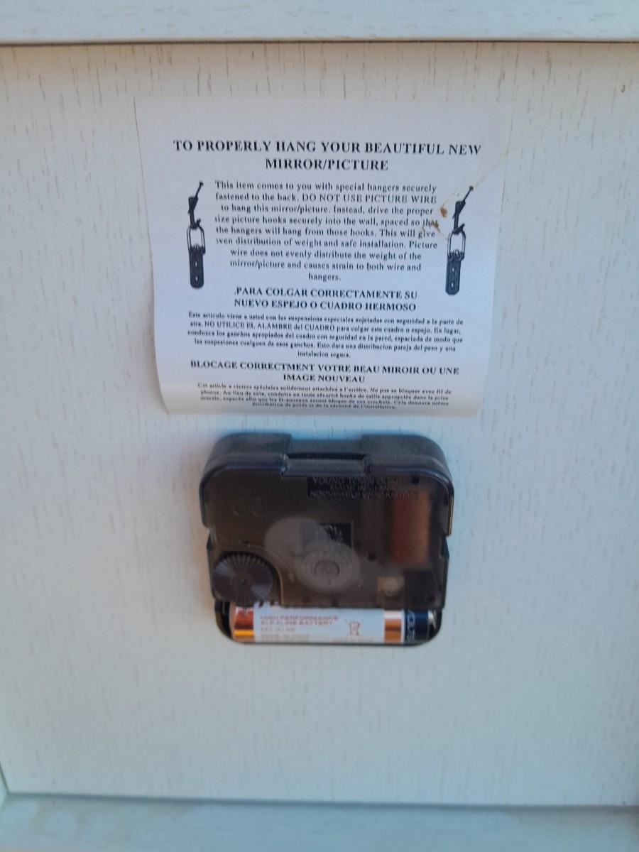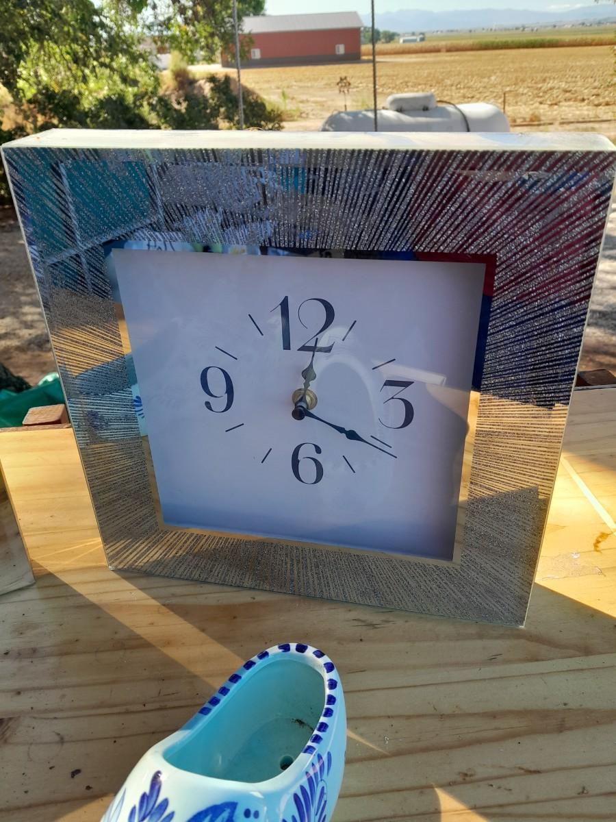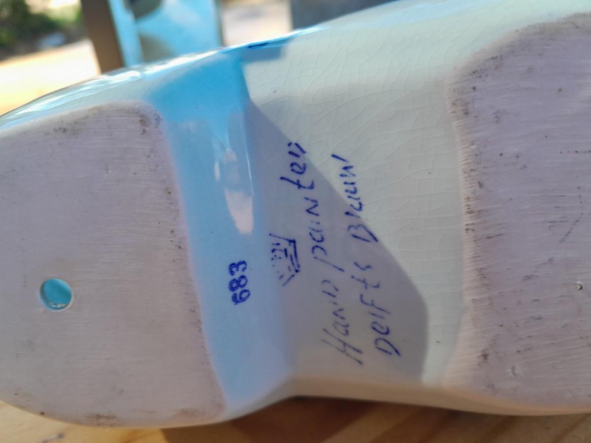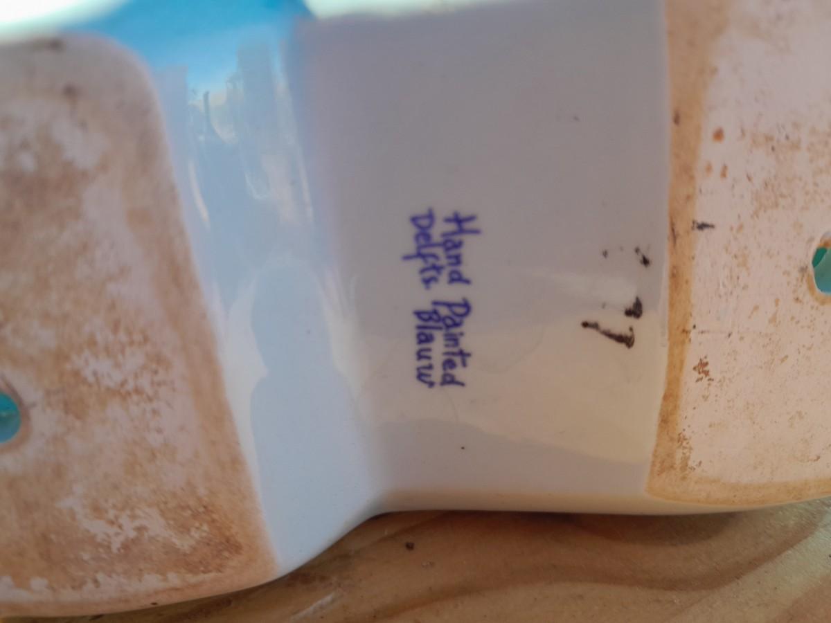 MIRRORED CLOCK, AND DELFT BLUE SHOES WITH THREE MIRRORED FREE STANDING BLOCKS