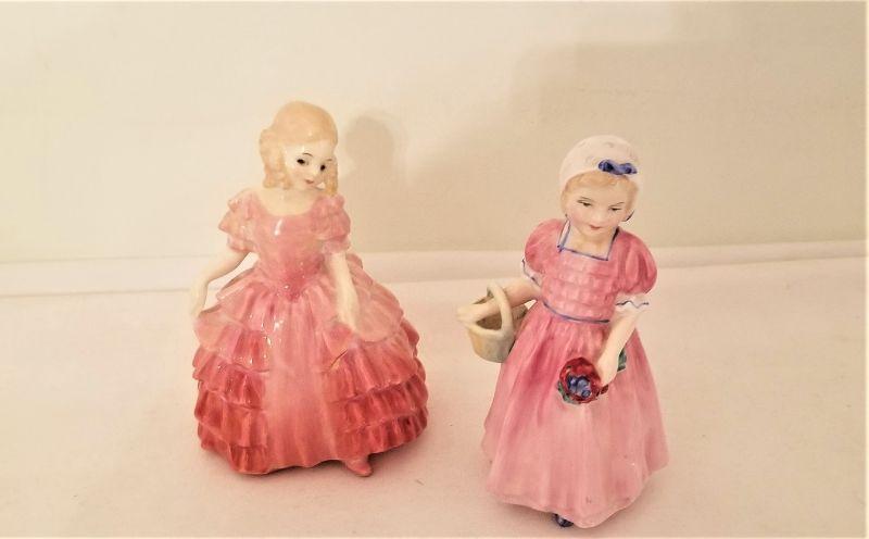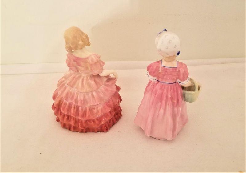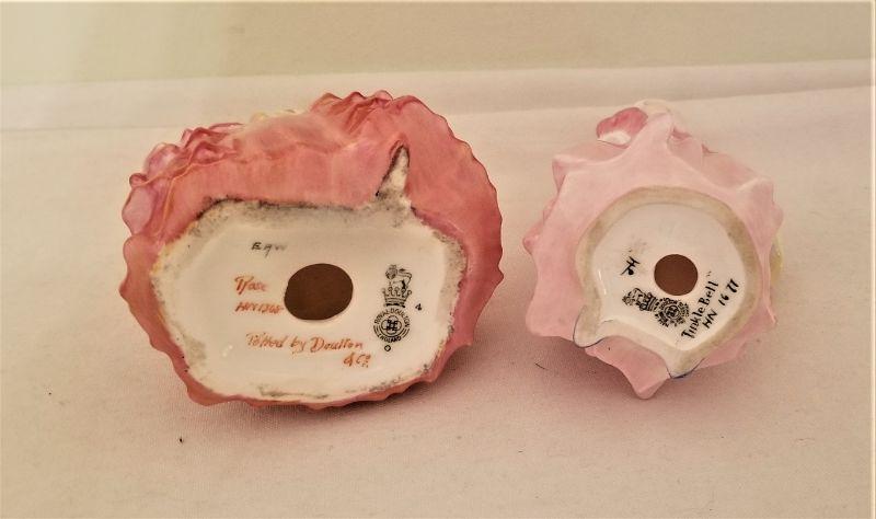 Sweet lot of two Royal Doulton figurines - " Rose" and "Tinkle Belle" One stands 4" tall, the other is 5" tall. Good condition.