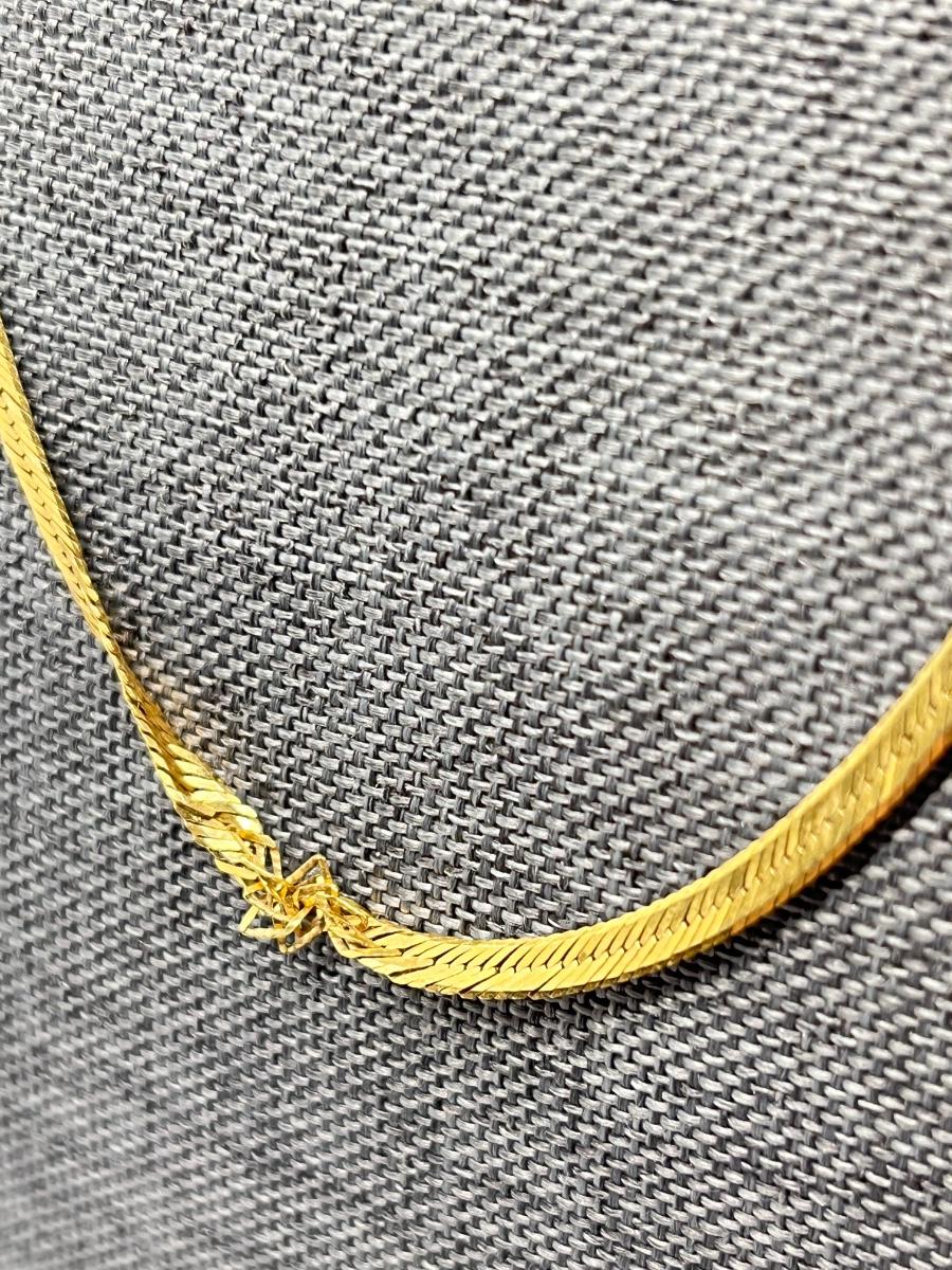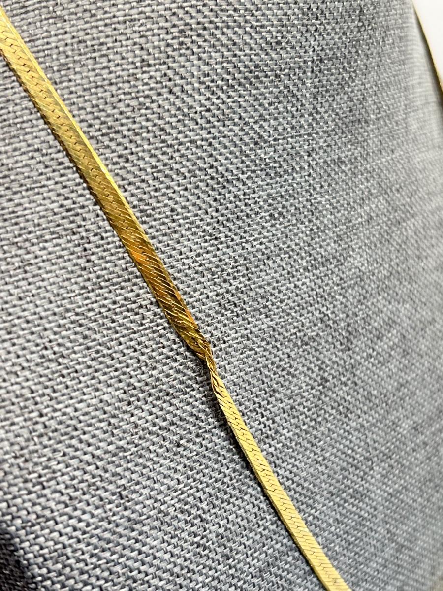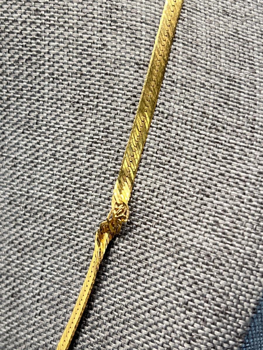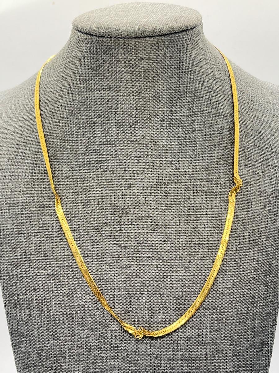 7.0 grams. 18.5 inches. Clasp replaced. Condition has issues as pictured. Please see all pictures as they are the best representation of the items. The pictures show condition, measurements if taken, and what is included in the lot. Due to the large amount that we photograph and the time frame, we are not always able to take measurements. All items unless noted, are pre-owned and have been used. If you purchased furniture, you must bring help. We do not allow one person to carry large furniture out on their own. Bring help, tools and a truck for the safety of our client’s homes, and your personal safety. Any damages that result to the property including walls, and floors due to moving of the furniture will be charged to the buyer. Company policy. Thank you.