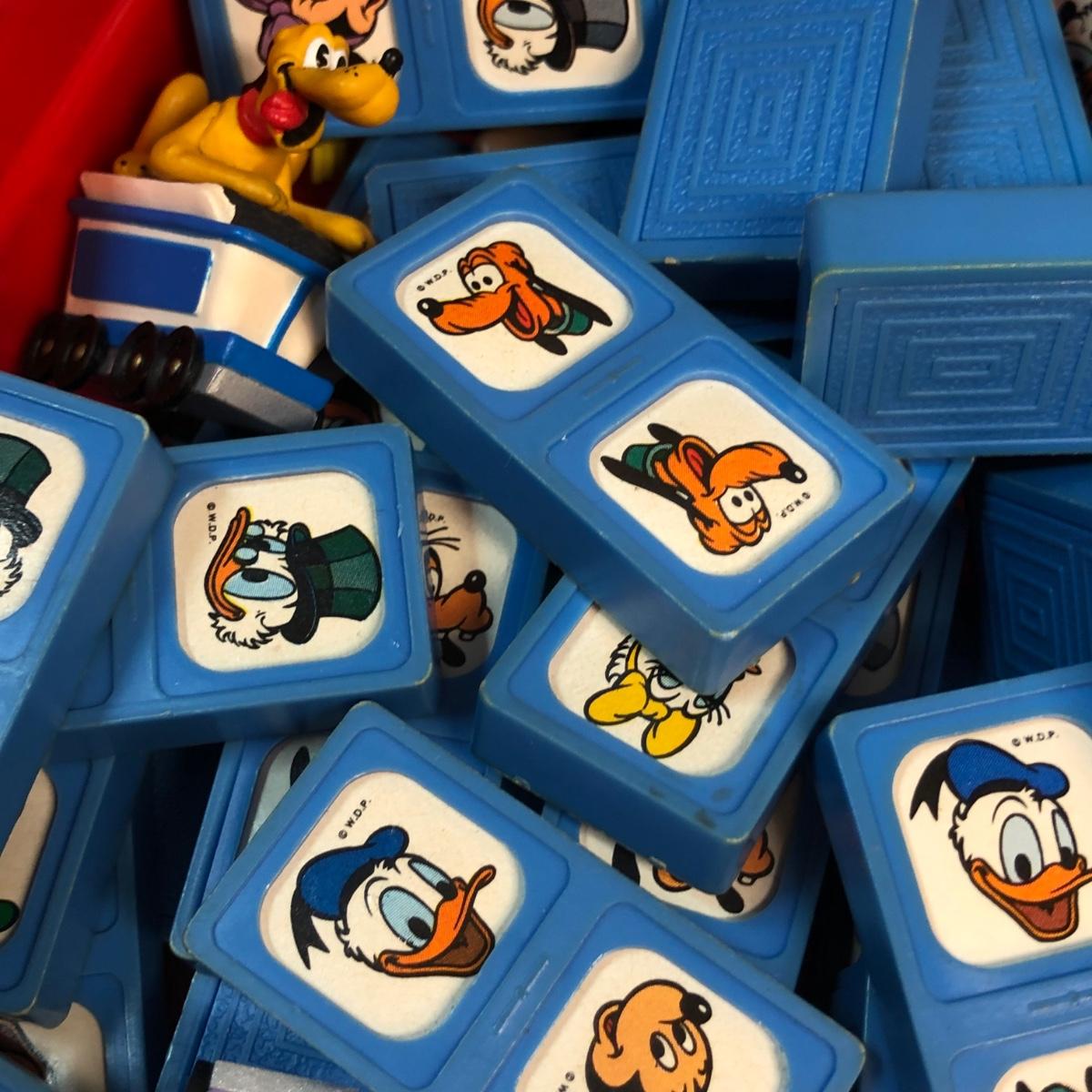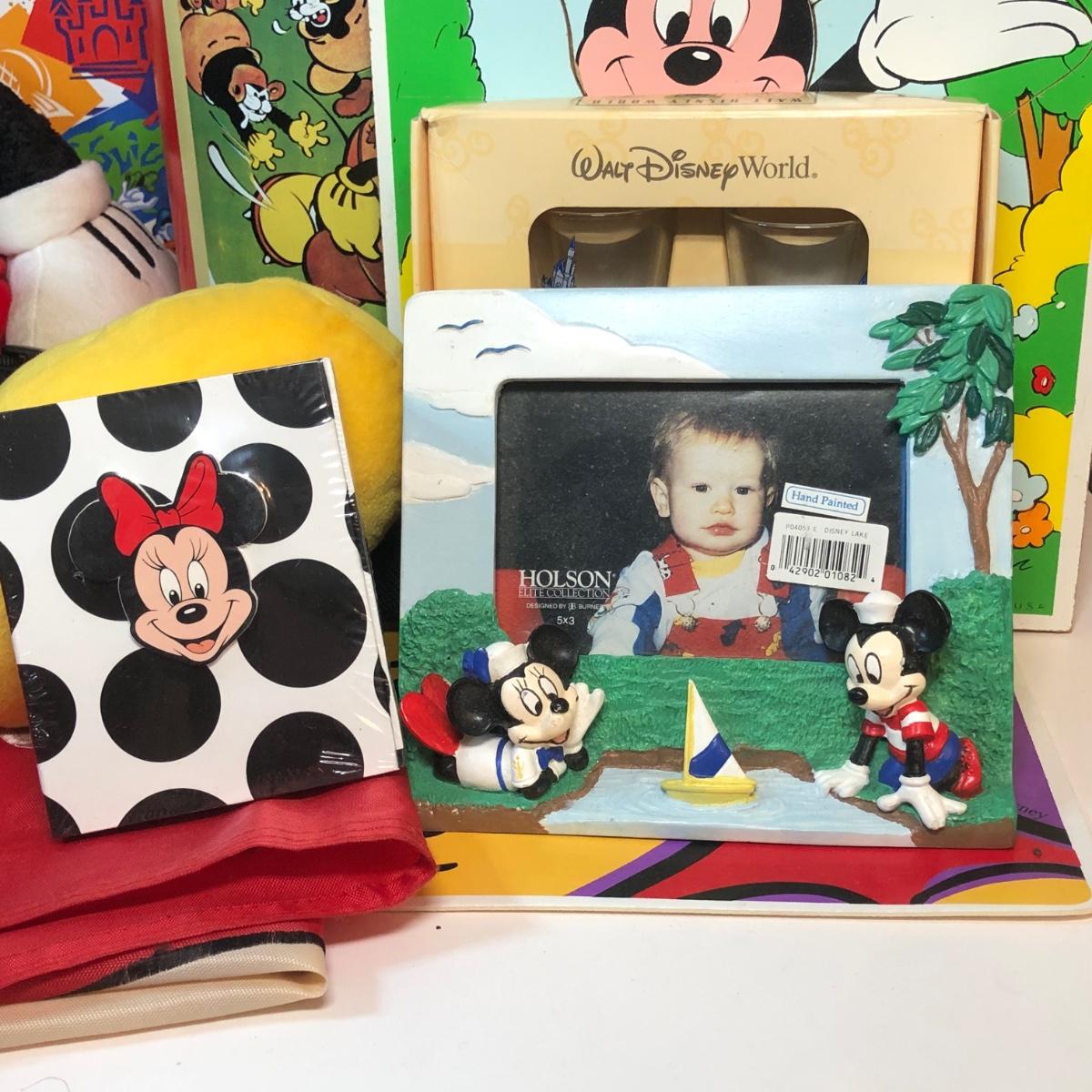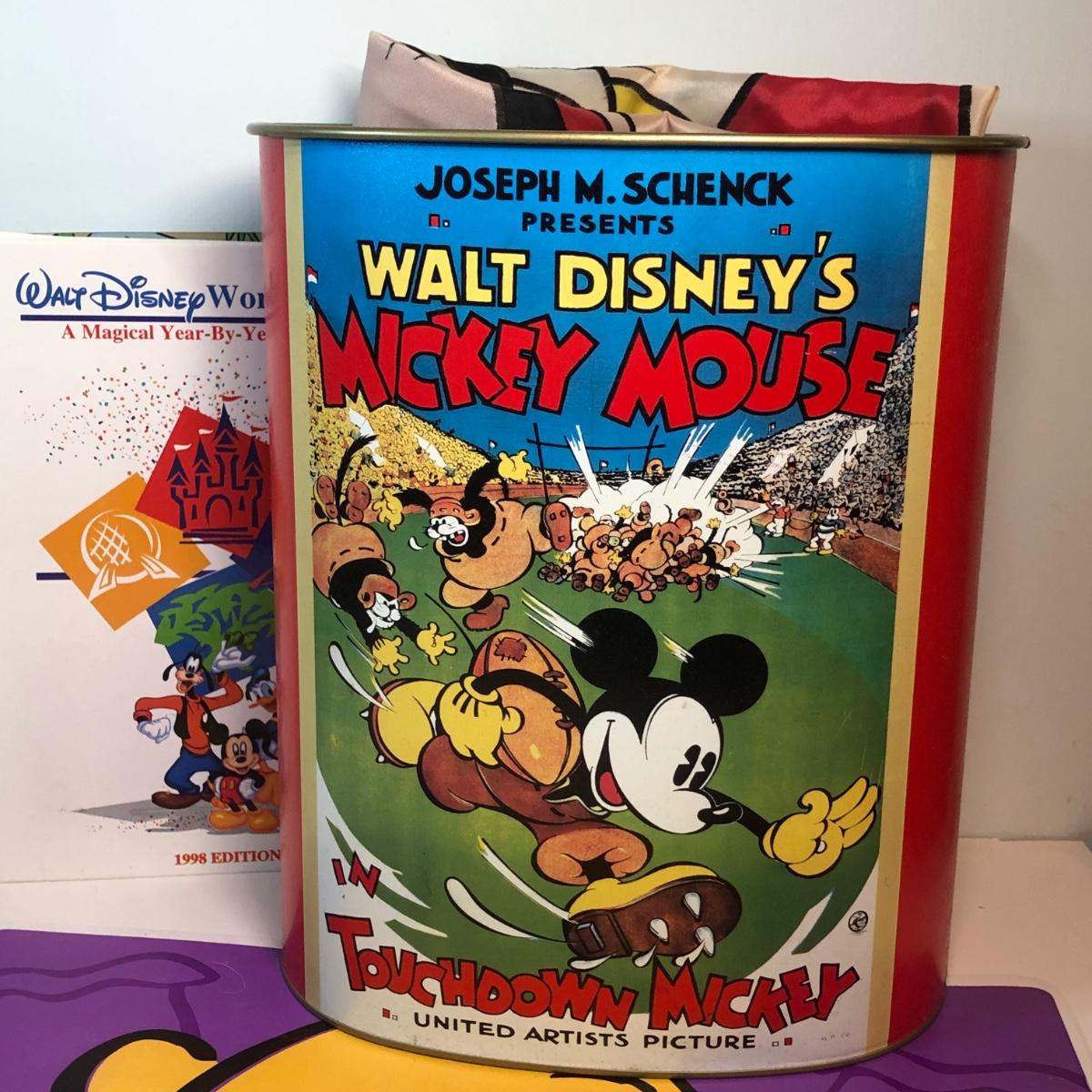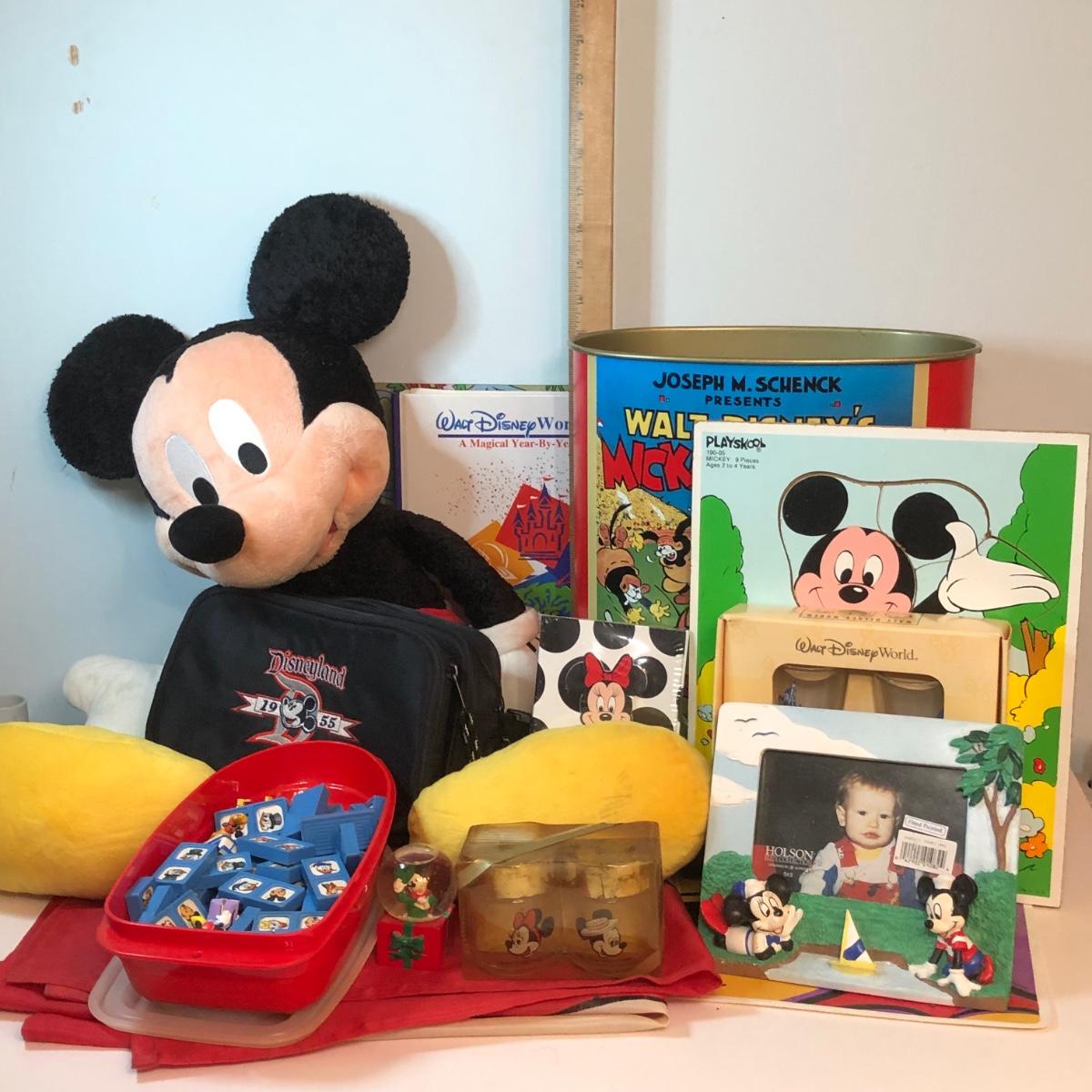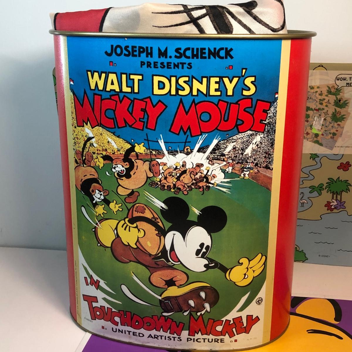 LOT 301M: Disney Collection - Vintage Donald Puppet, Wastebasket, Dominoes in Tuppertoy Container, Photo frame, Books & More
