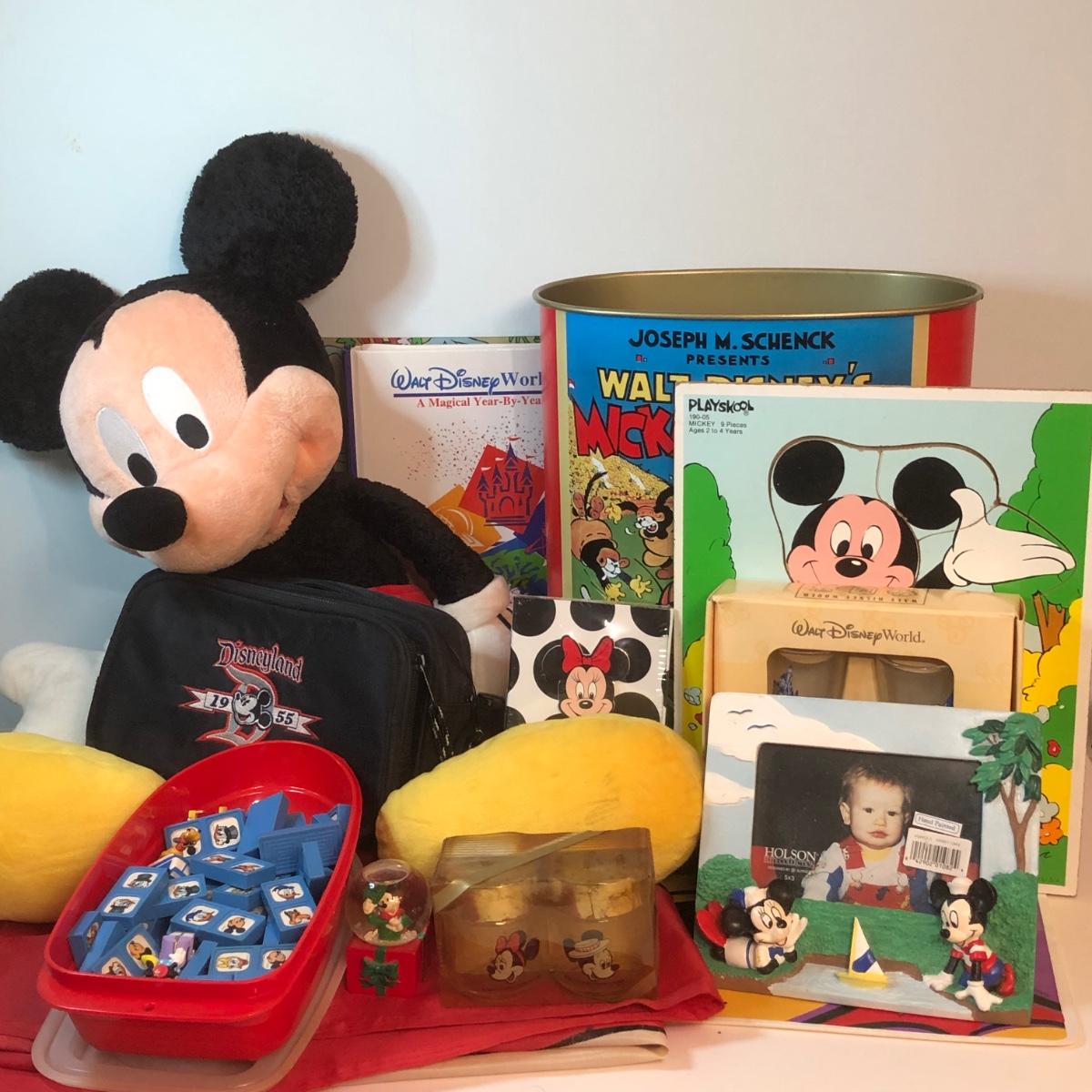 Also includes a small puzzle, S&P shakers, a set of WDW shot glasses, placemats & a Disneyland hip bag.