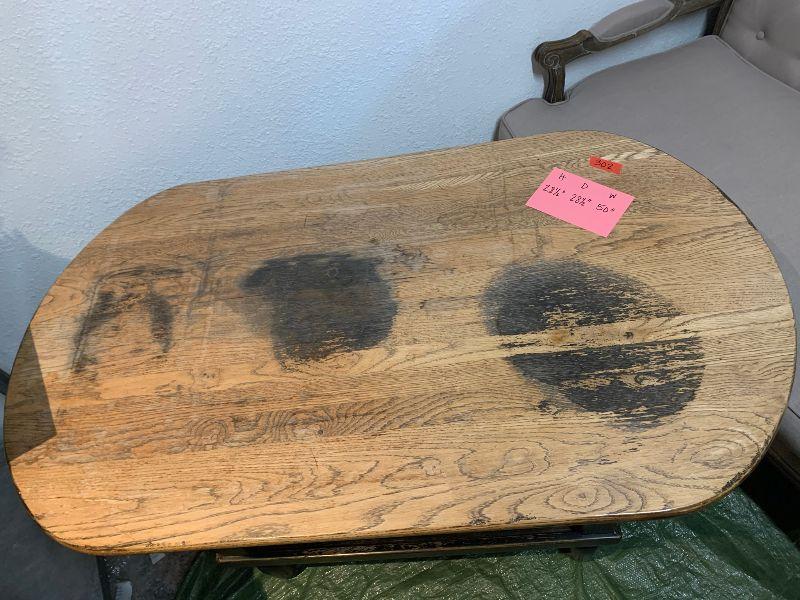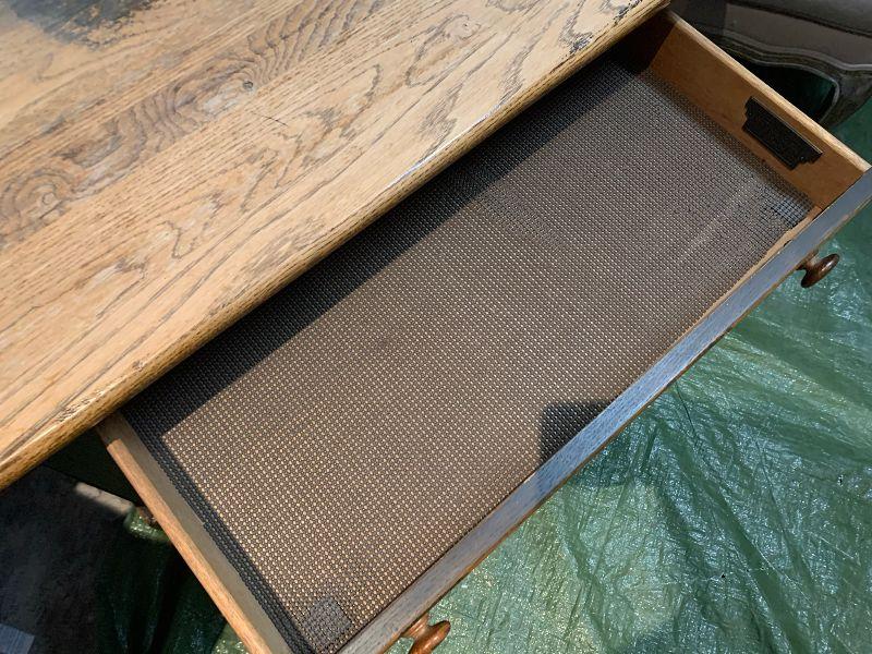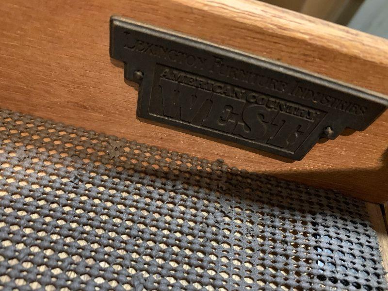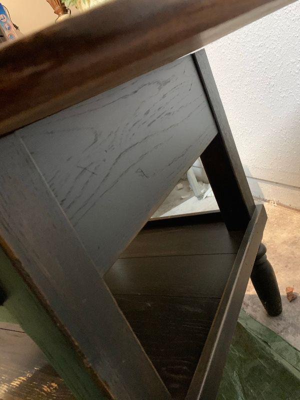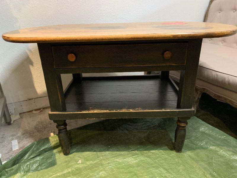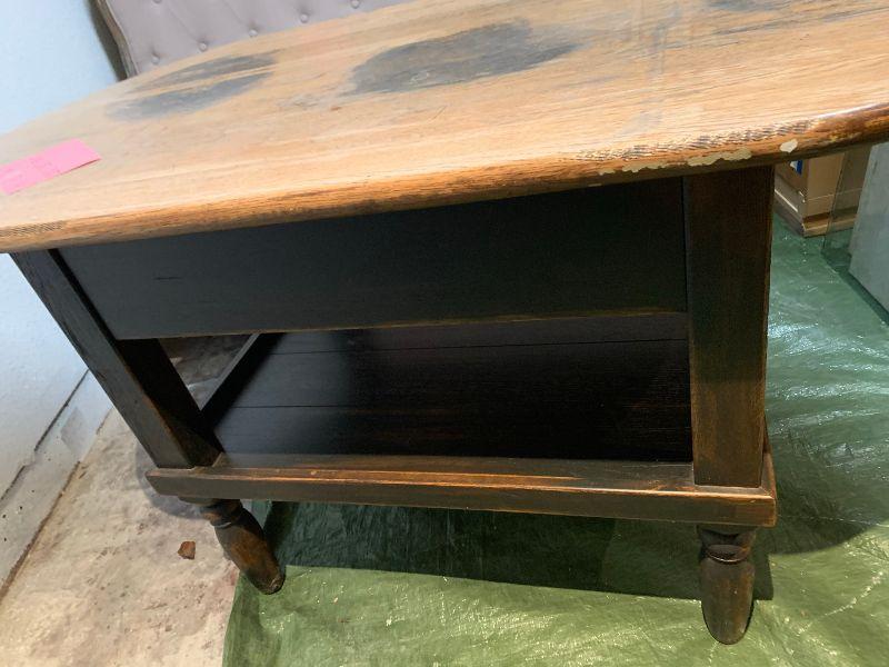 Lexington Furniture Industries. American Country West table with drawer and under shelf. As is top. Heavy and Sturdy