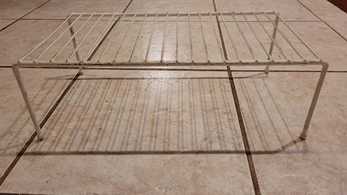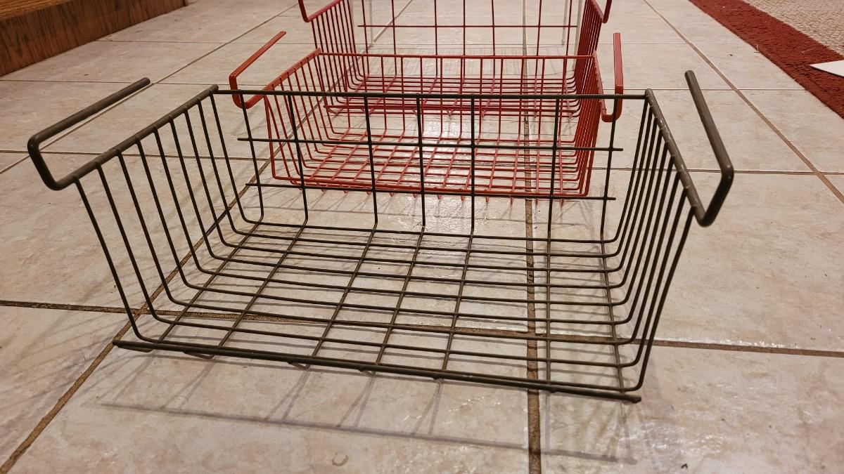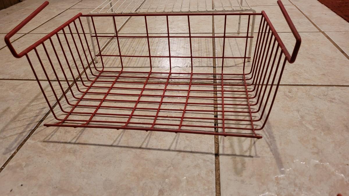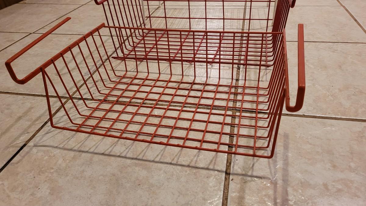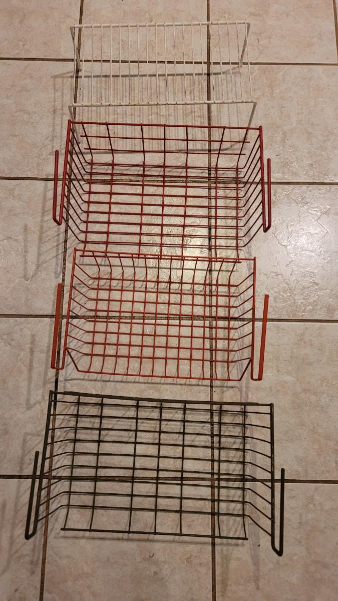Lot 302: (3) Metal Under Shelf Baskets and (1) White Metal Riser