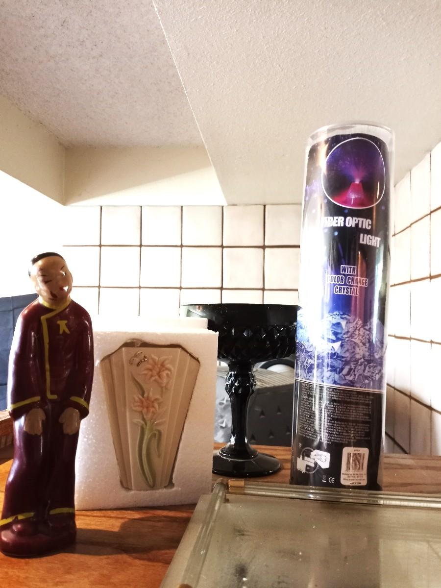ASIAN MAN AND WOMAN FIGURINES-TABLE MIRROR-PICTURE FRAMES-CANDY DISH-VASE-FIBEROPTIC LIGHT