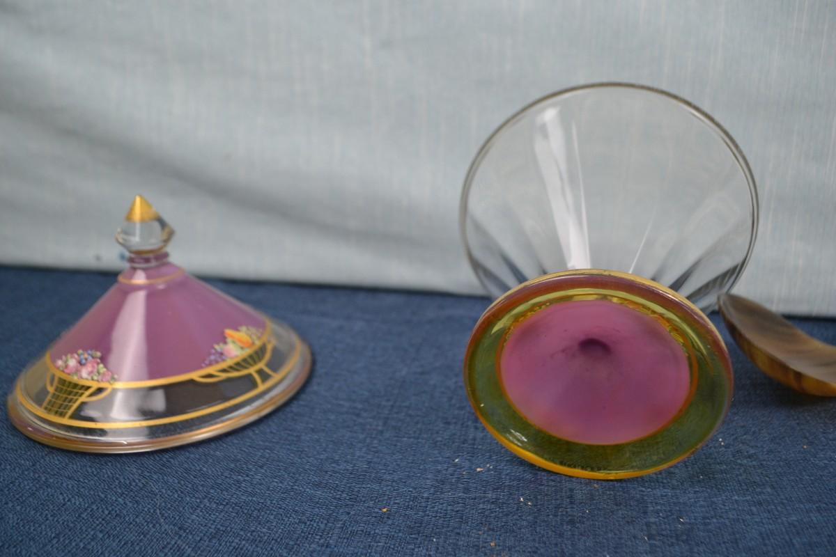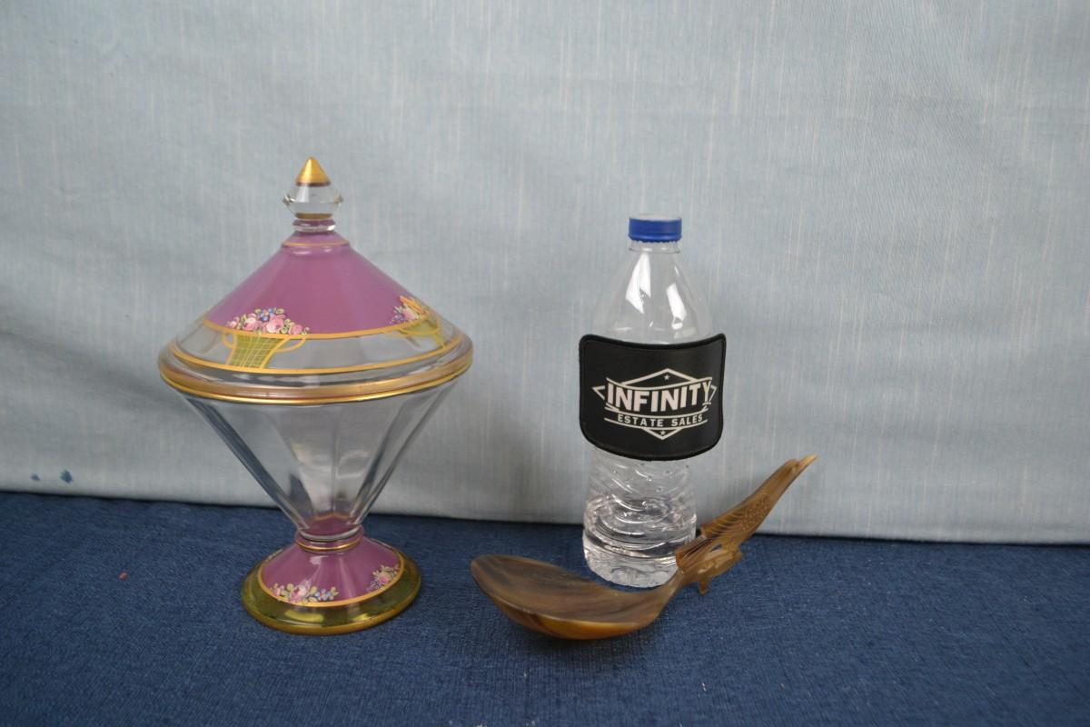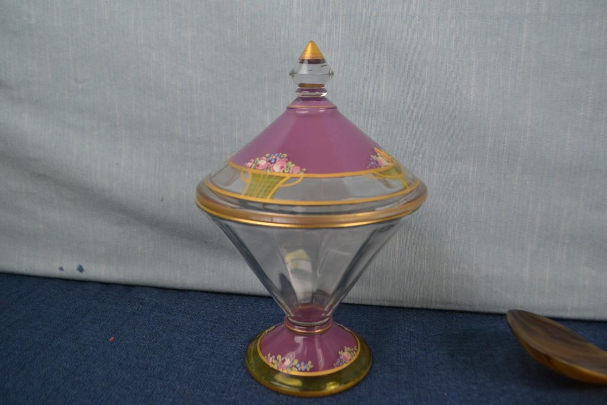 PINK GLASS CONE JAR WITH LID AND DECORATIVE SPOON