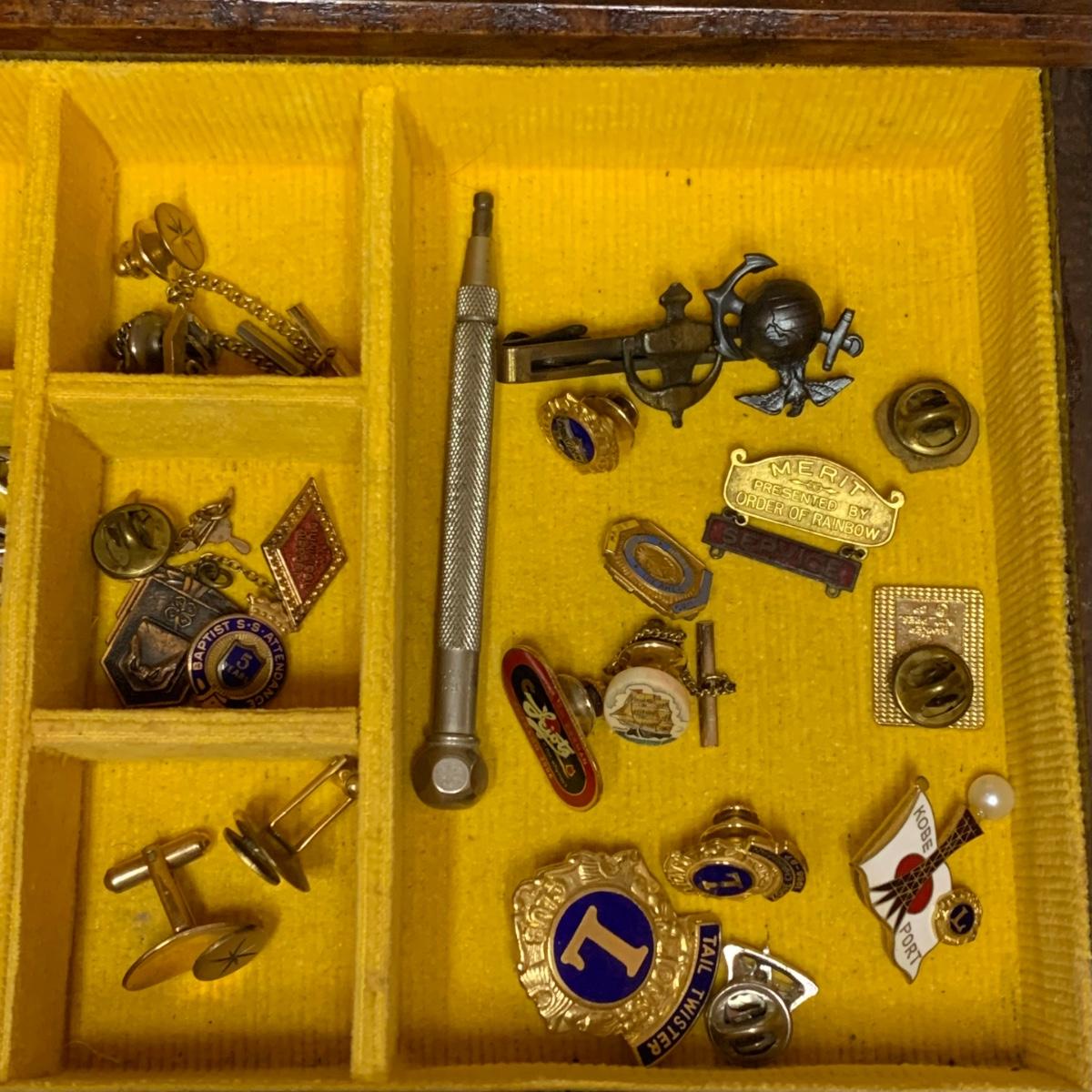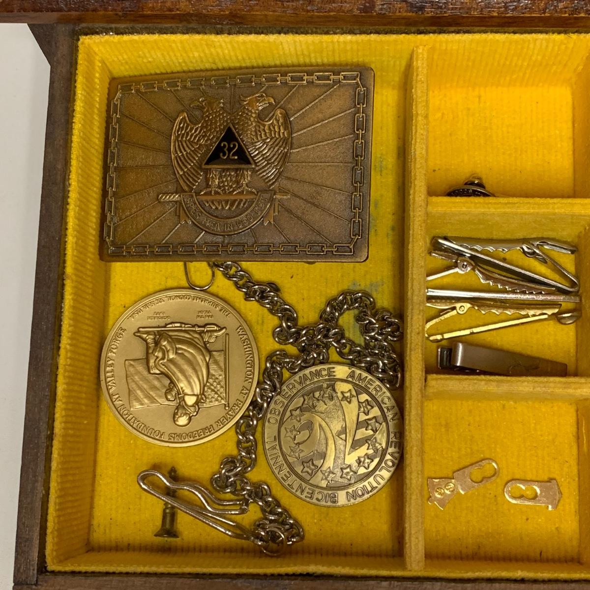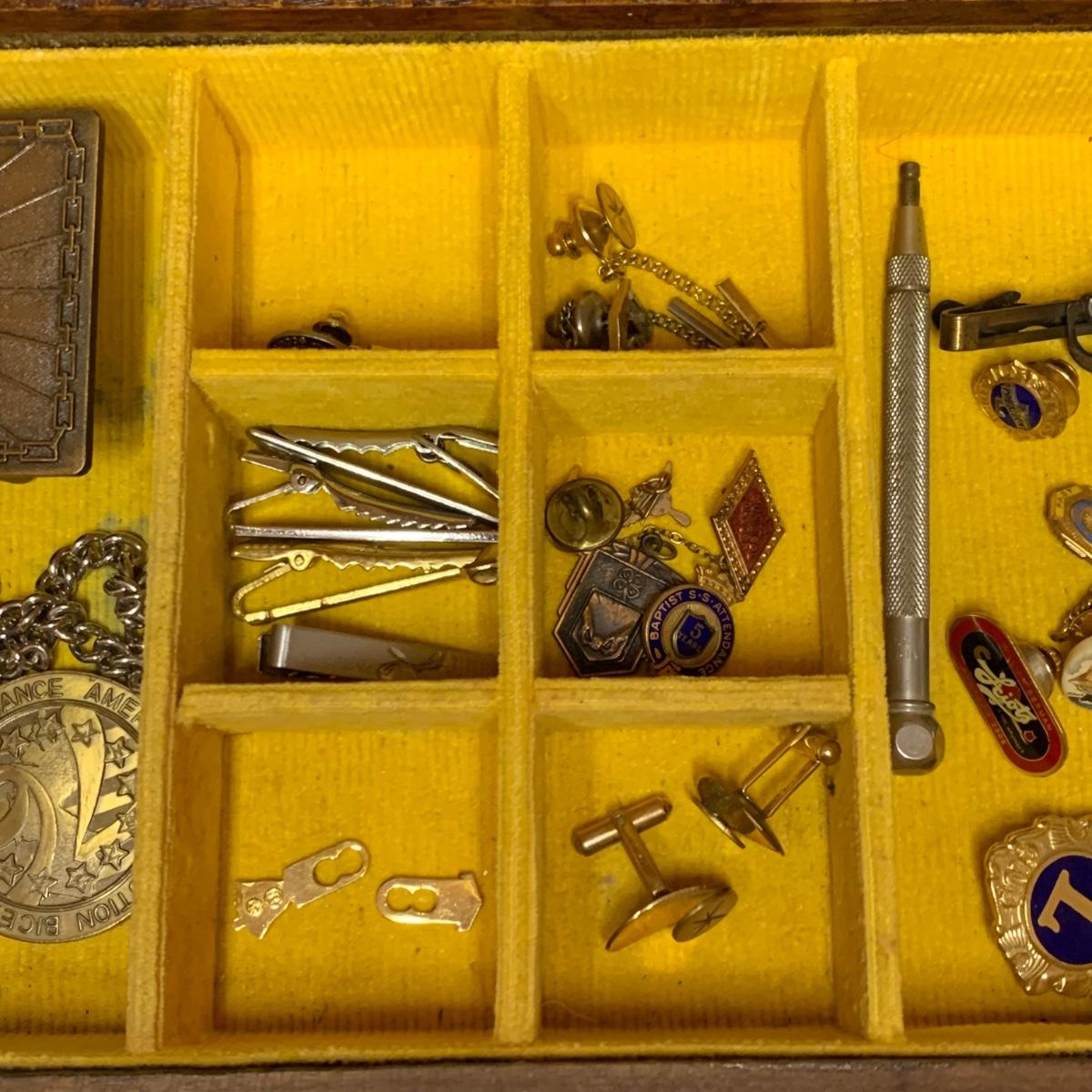 Lot 302R: Men's Dresser Valet, Cuff Links, Tie Clips, Avon Bold Eagle After Shave Bottle & More