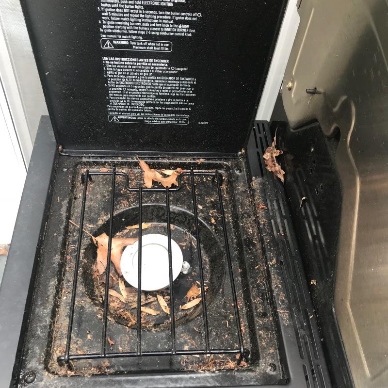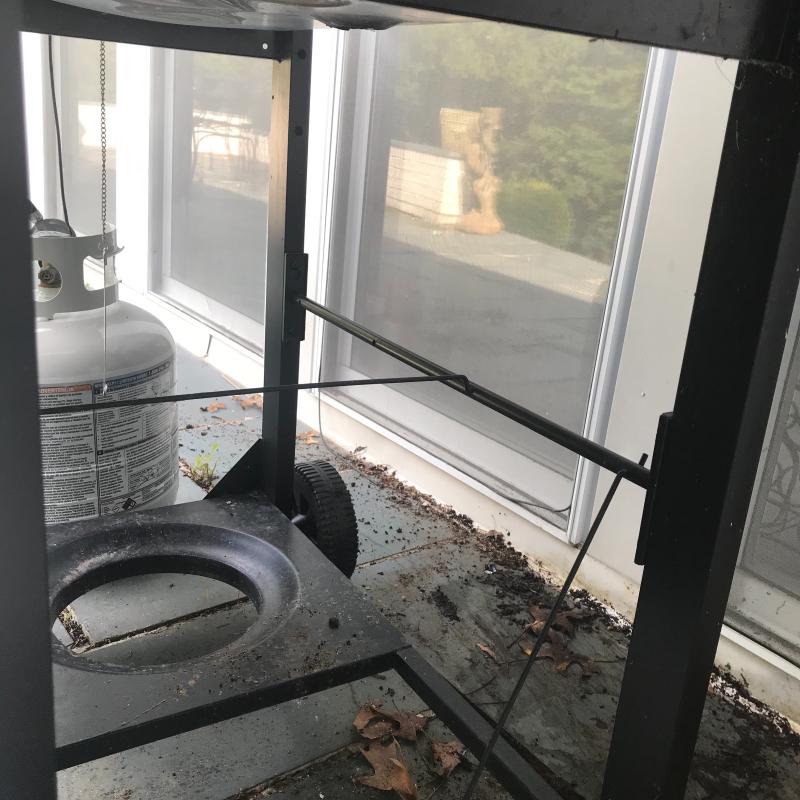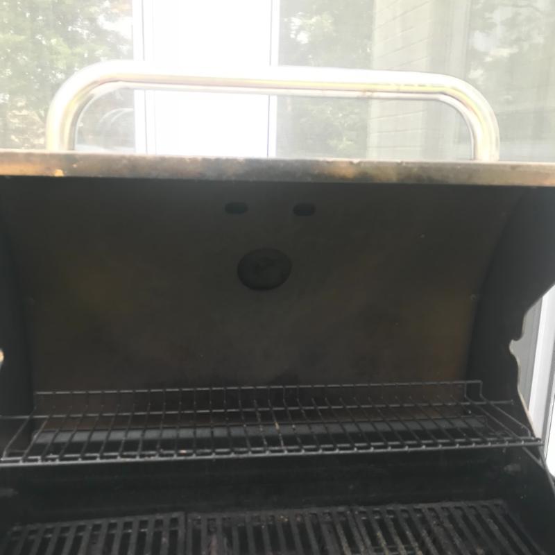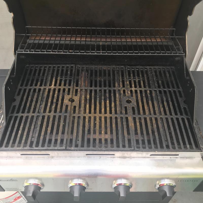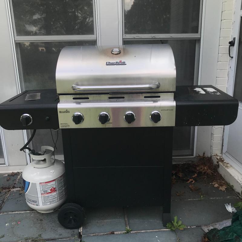 Four burner with side burner has normal rusting but sturdy and looks relatively new. Ignitor does not work. Needs a good cleaning and conditioning. Tank included. No cover though there was one. Unit measures 54” x23” x46”. Local pick up only.