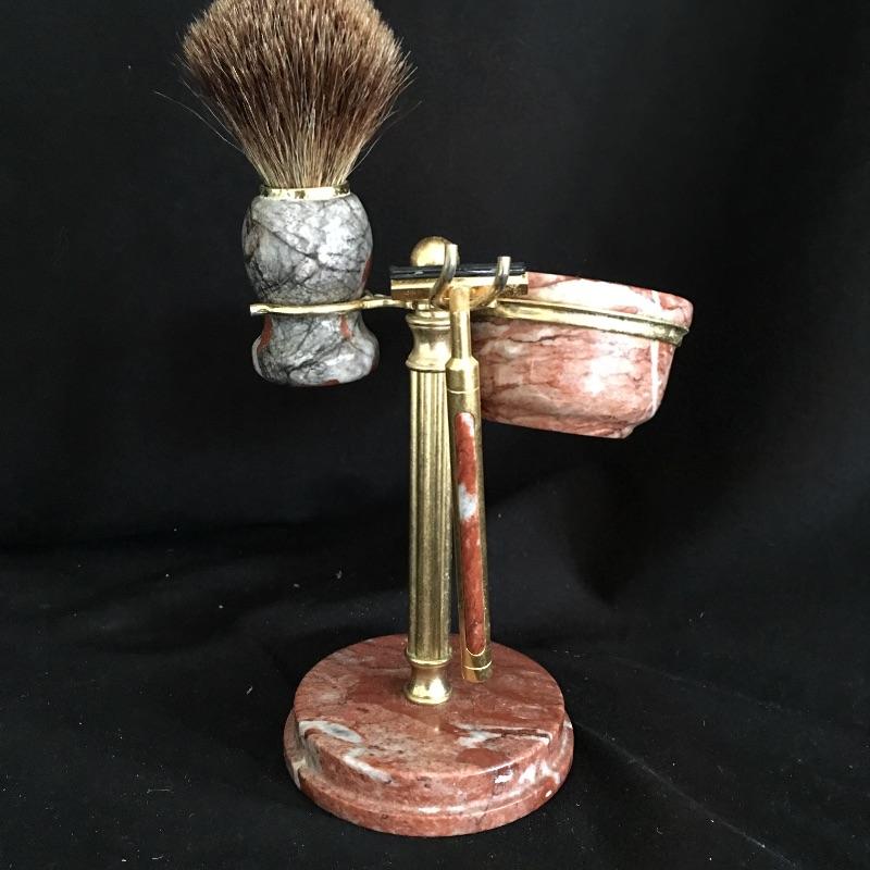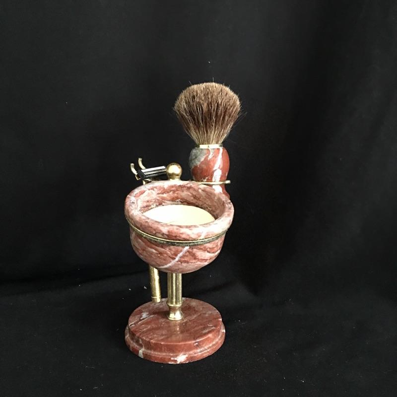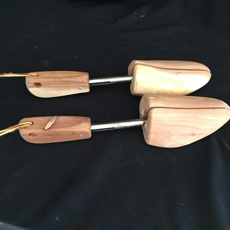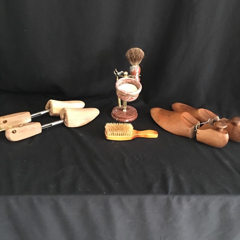 Classic gentlemen’s lot includes two pair of wooden shoe trees, wood handled brush and classic shaving stand. Think back to the days when items were made to last.