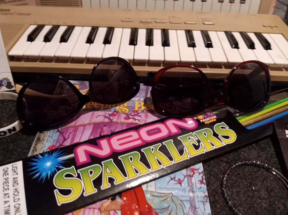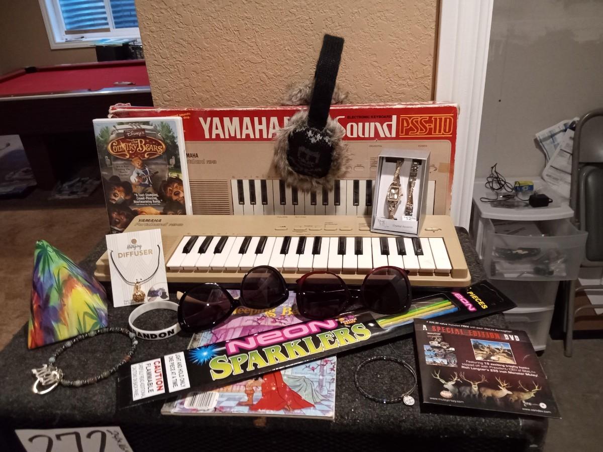 YAMAHA PORTASOUND, JEWELRY, SUNGLASSES, DVD MOVIE, EAR MUFFS, SMALL PLAY GUITAR AND MORE