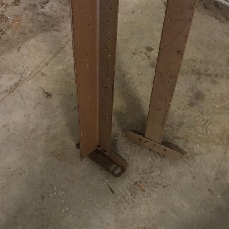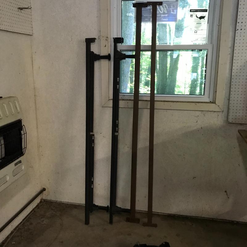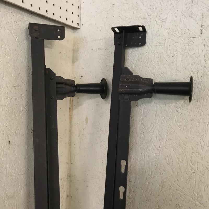 Metal bed frame includes black horizontal (65”x7”) with hard plastic feet and brown vertical rails (76”). Local pick up only.