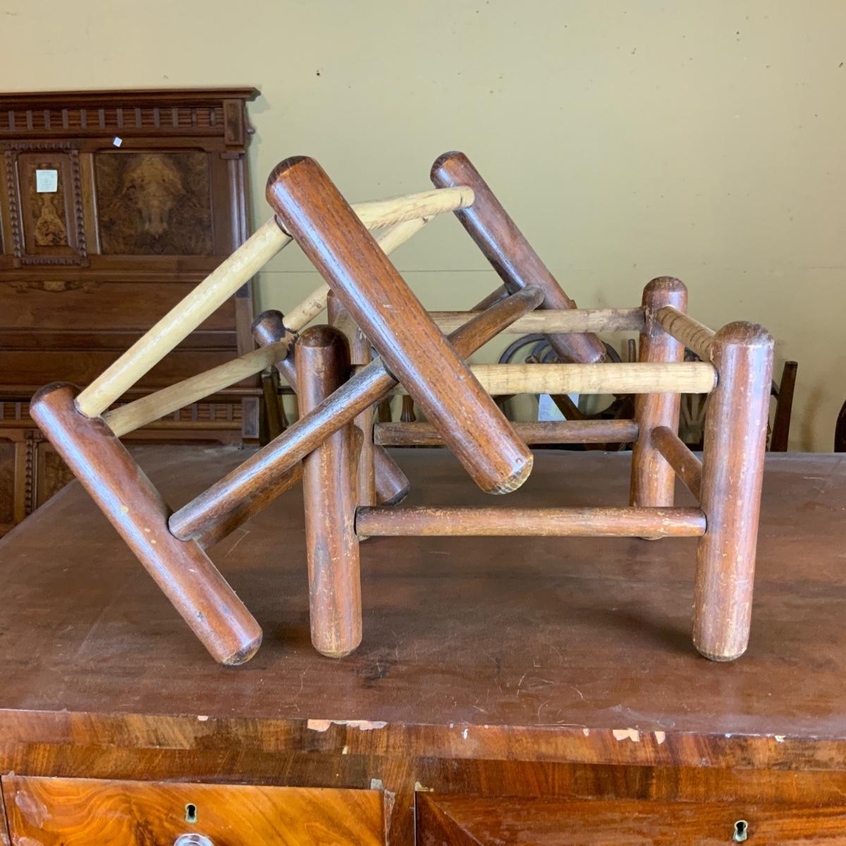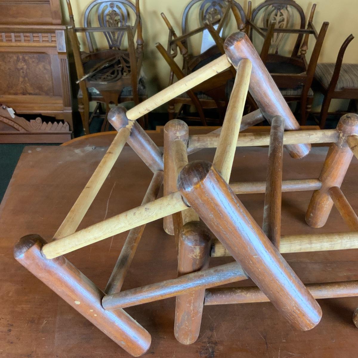 Two Woven Footstool Frames. Attach some leather strapping in a decorative pattern, and you’re ready to go! //::\\ Please see photos for details and condition. No attempt has been made to hide any imperfections. All items listed in this auction are warehouse items, and need to be cleaned. A majority of the items need restoration as well. All items are sold AS IS and WITHOUT GUARANTEE. If you are uncertain about an item, DO NOT BID. Due to the nature of this online auction in-person inspection is HIGHLY recommended. All Sales are FINAL. Pick Up Times are FIRM. Please confirm with your own schedule that you can pick up in the scheduled times listed in the Terms and Conditions. Any questions please message the auctioneer. DO NOT Contact The Harp Gallery.