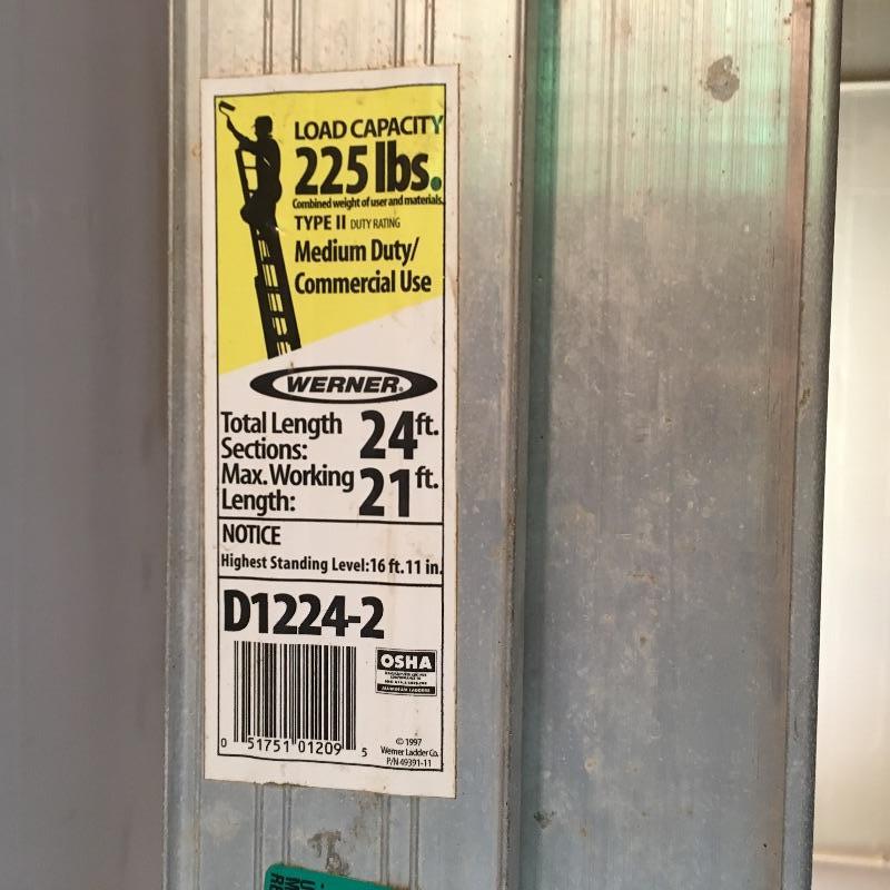 Werner aluminum 24’ extension ladder model # D1224-2. Buy this and you will never have to borrow a ladder again. Be sure to bring a car long enough to transport it home!