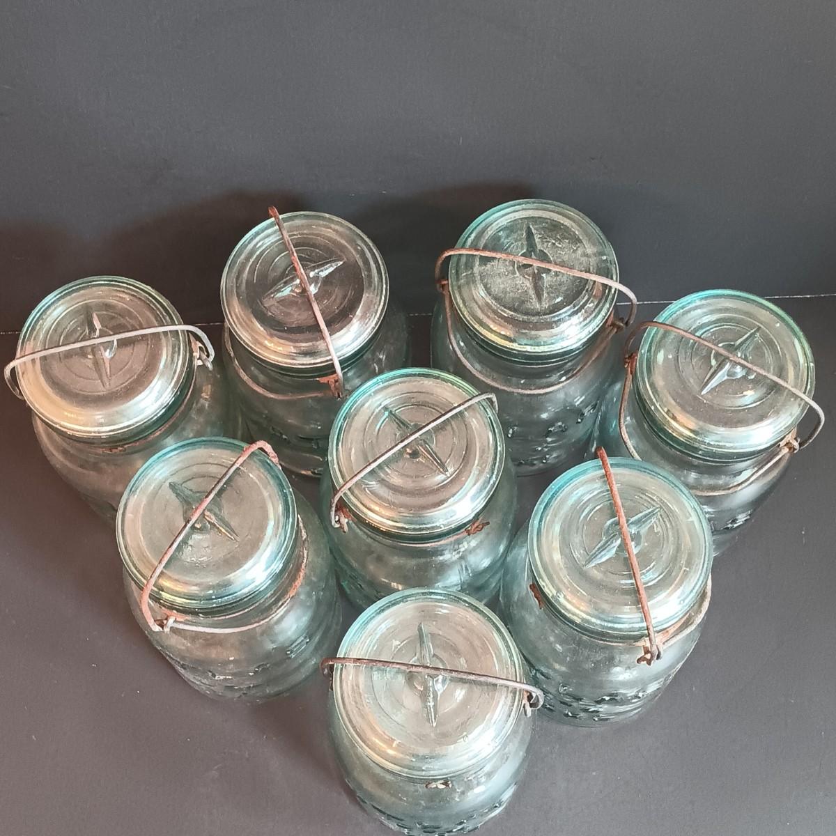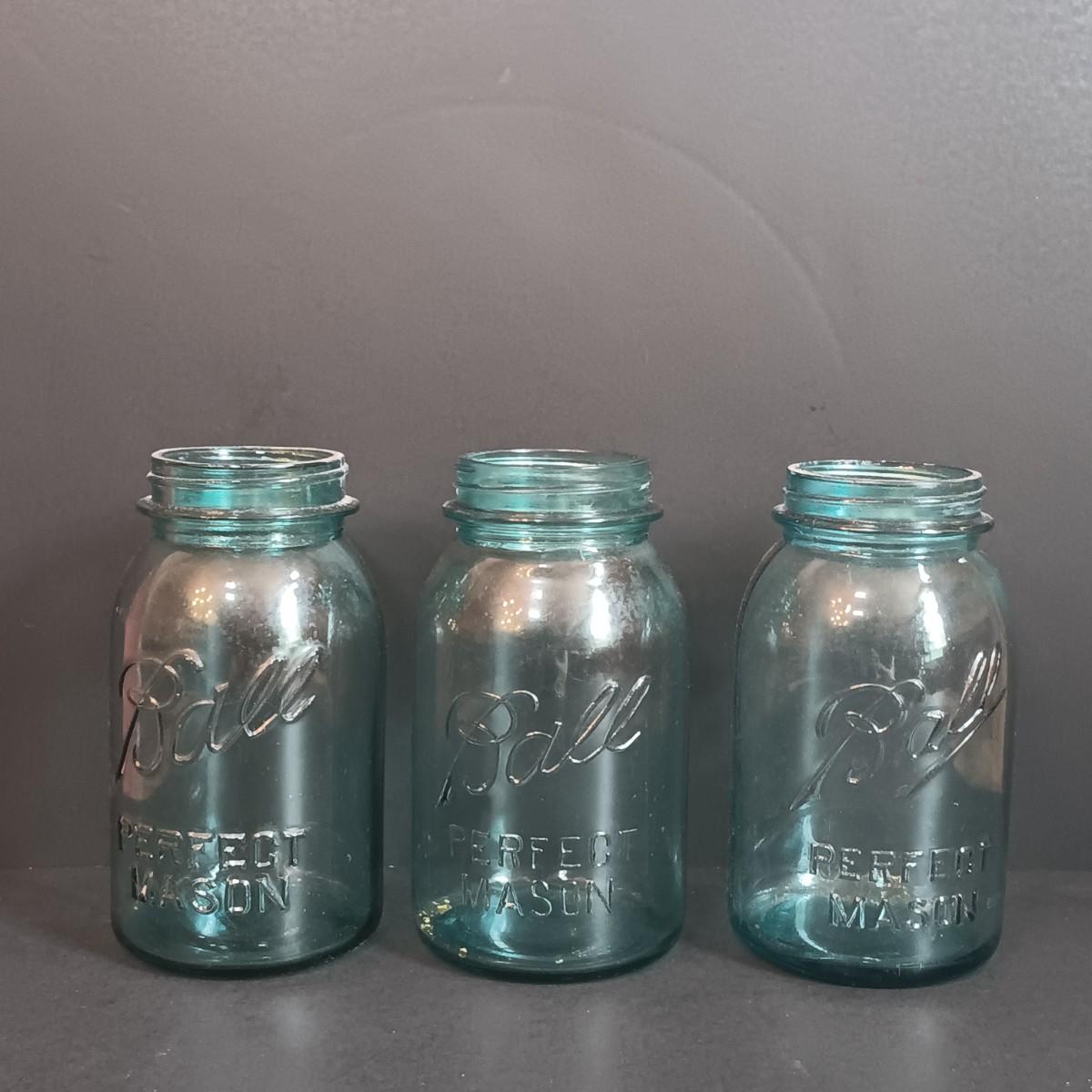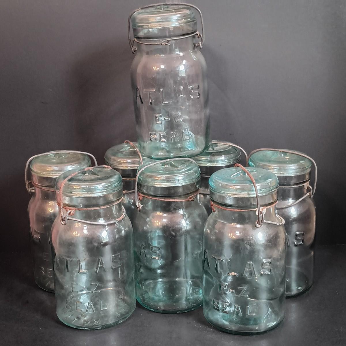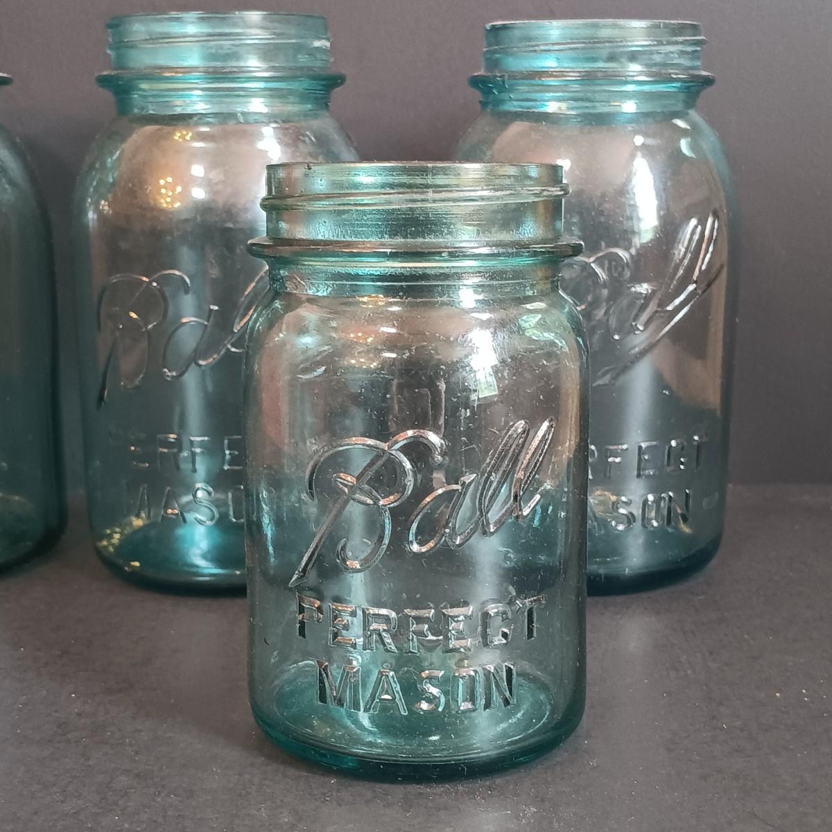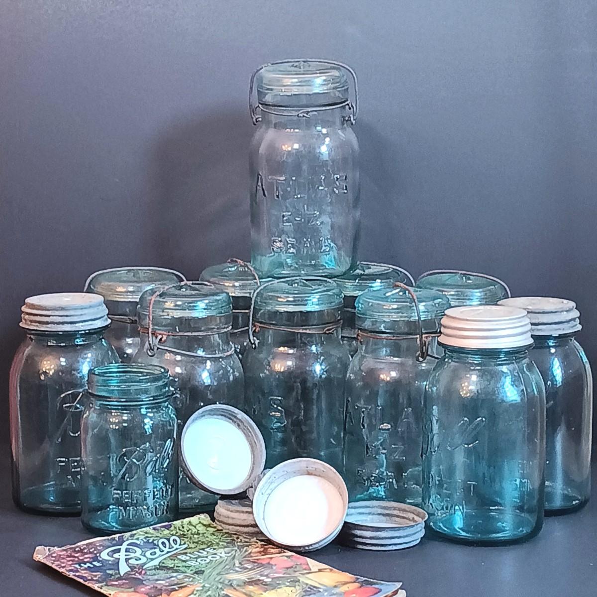 LOT 302D: Collection of Atlas & Ball Blue Mason Jars w/ Glass and Zinc Lids