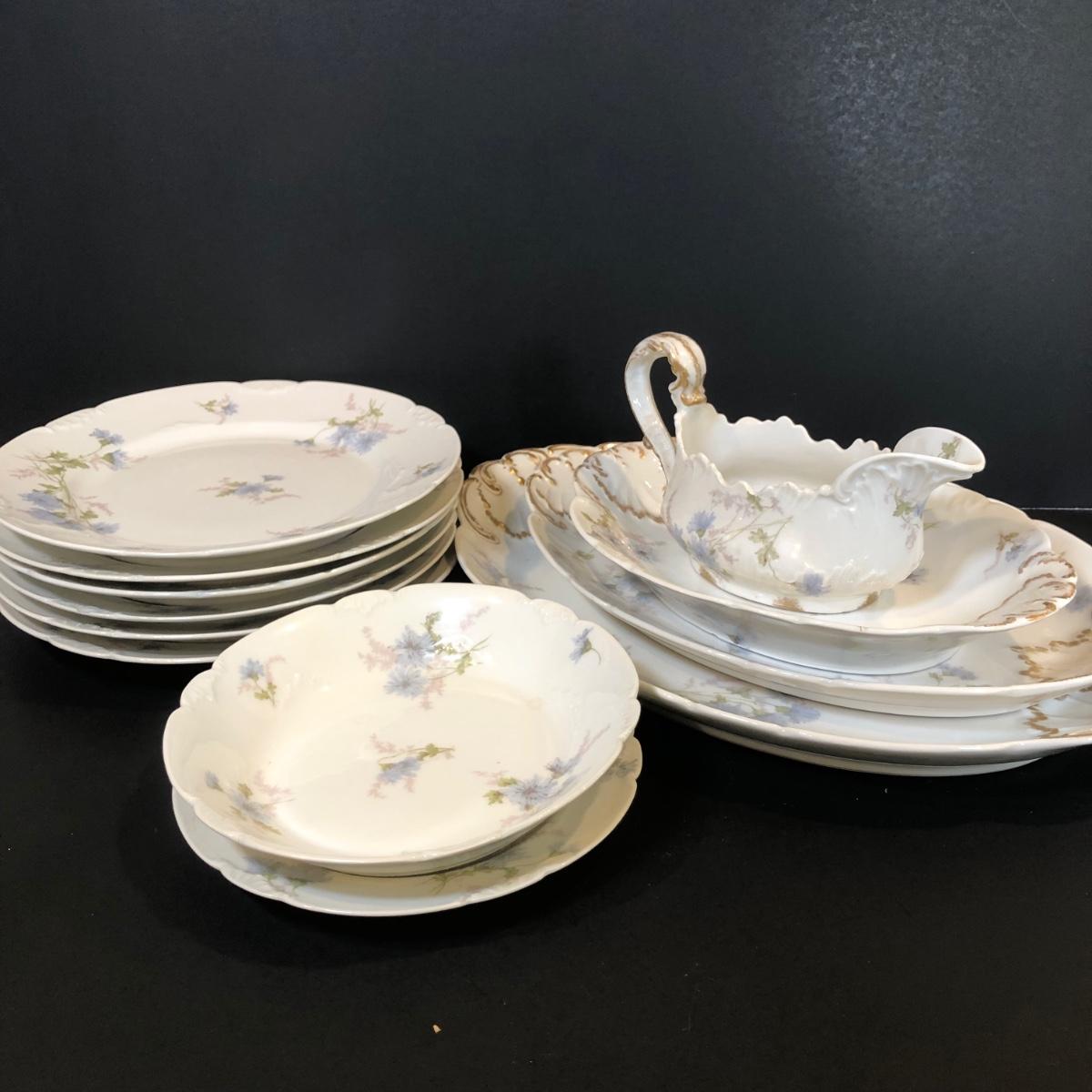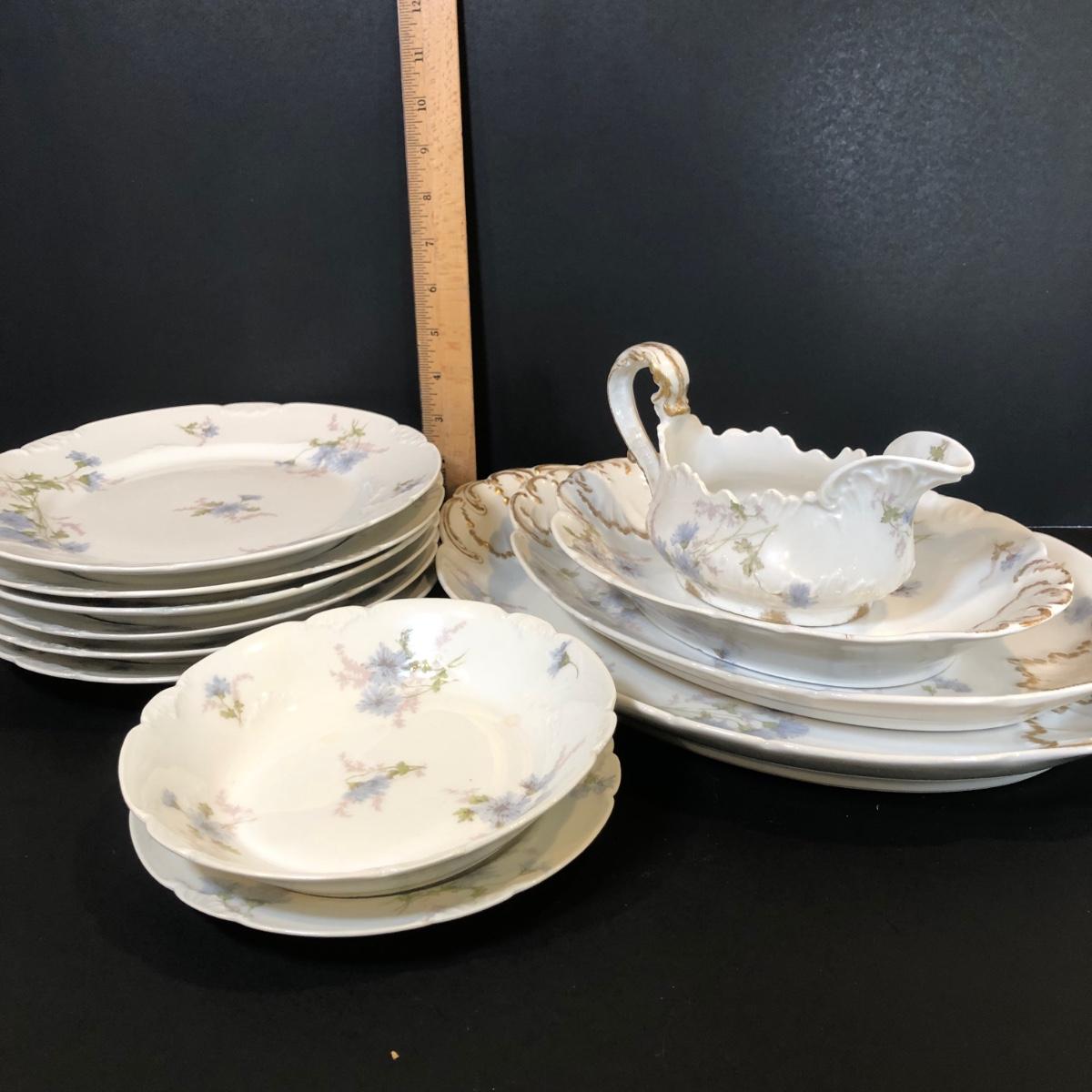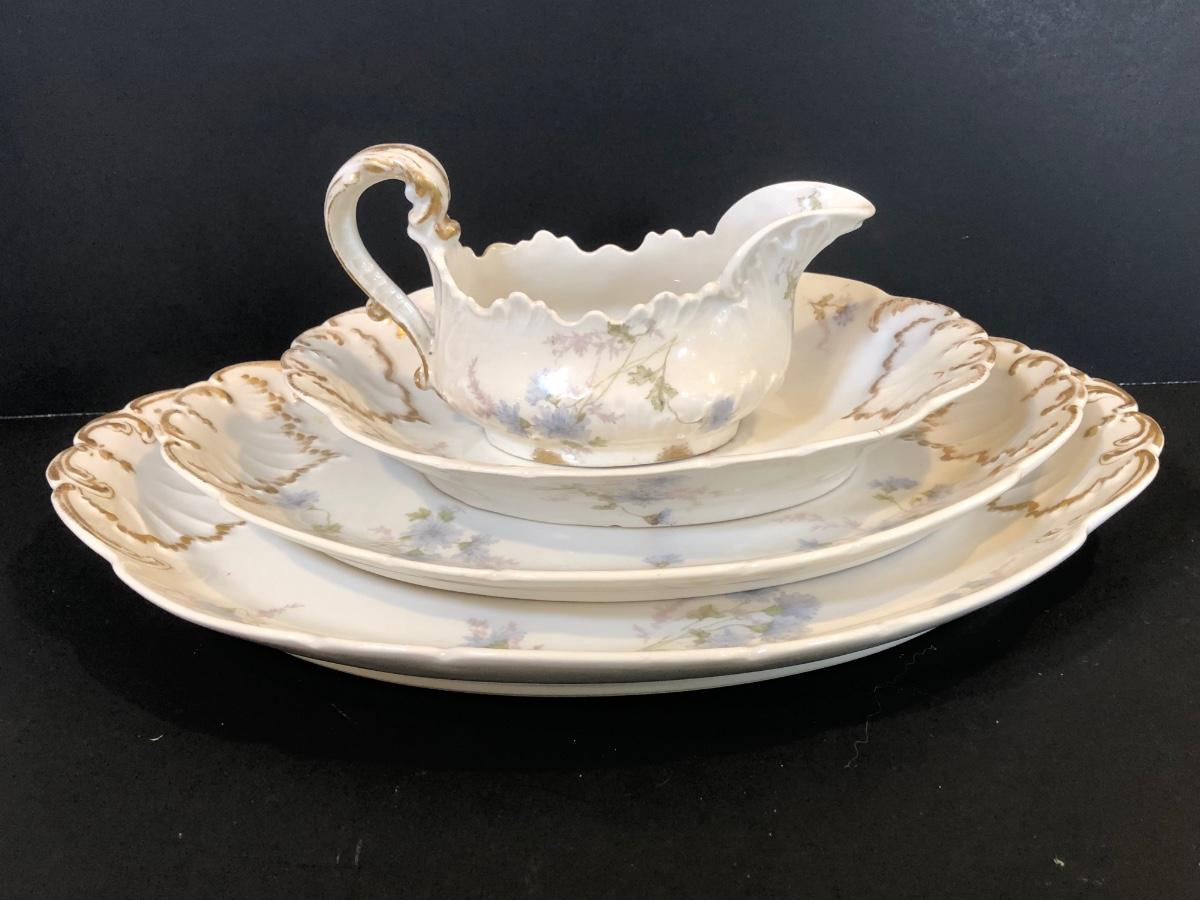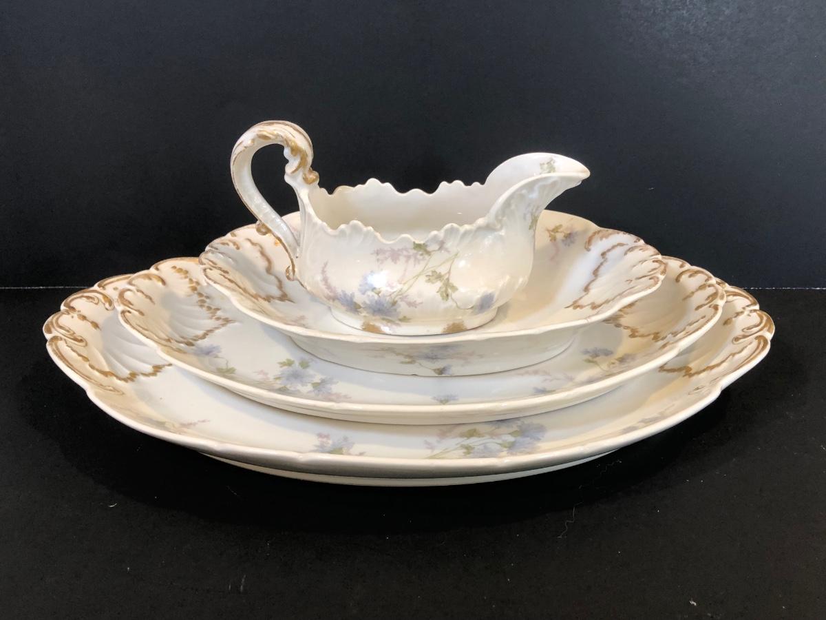 LOT 302K: Vintage Delicate GDA Floral Haviland Limoges China - Gravy Boat, Serving Platters & More
