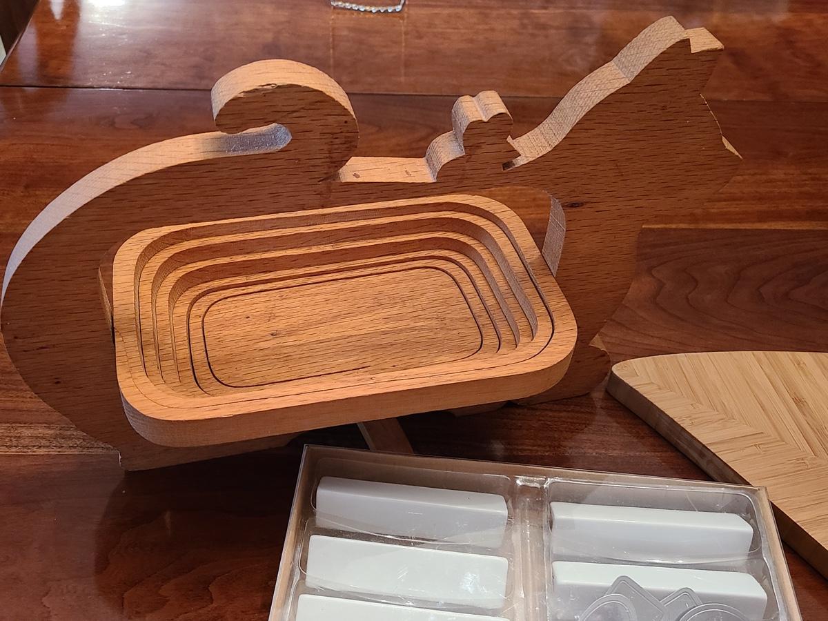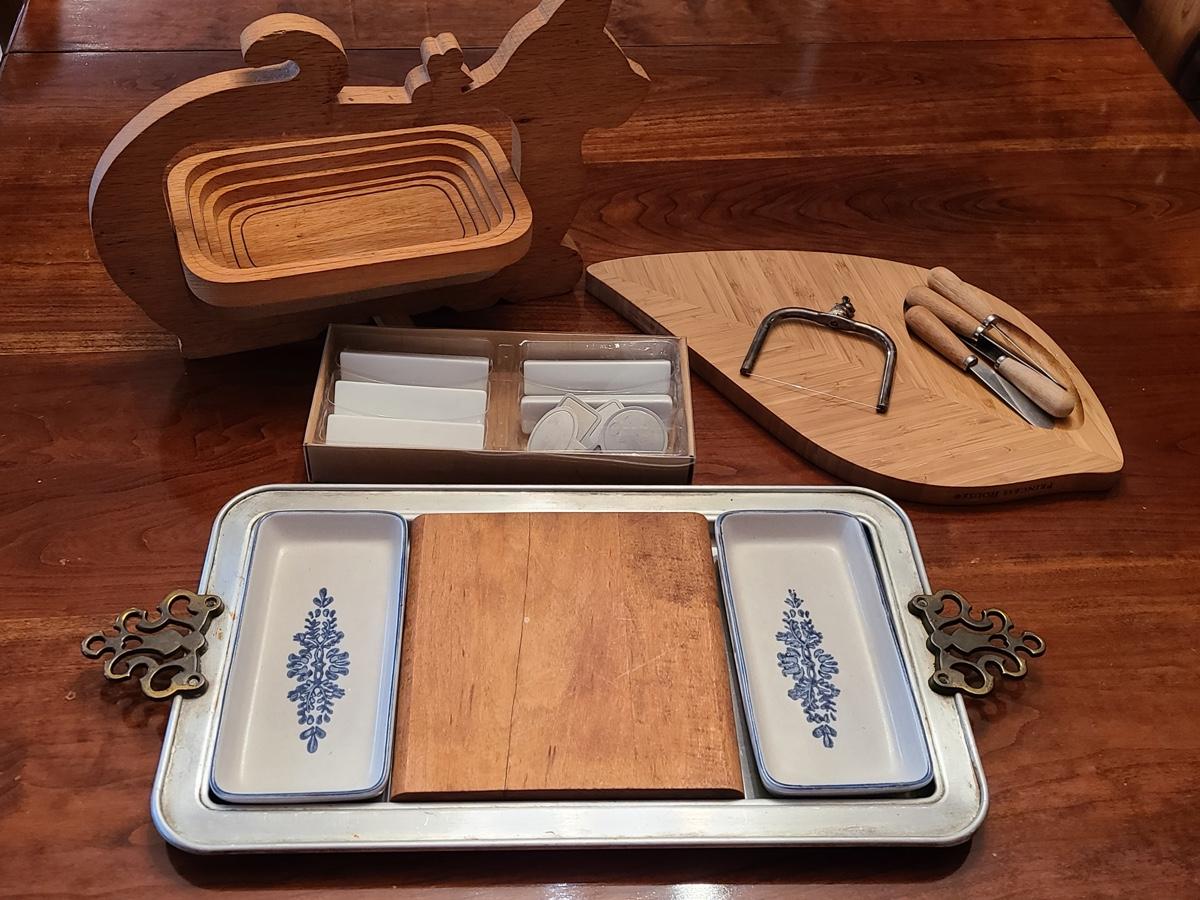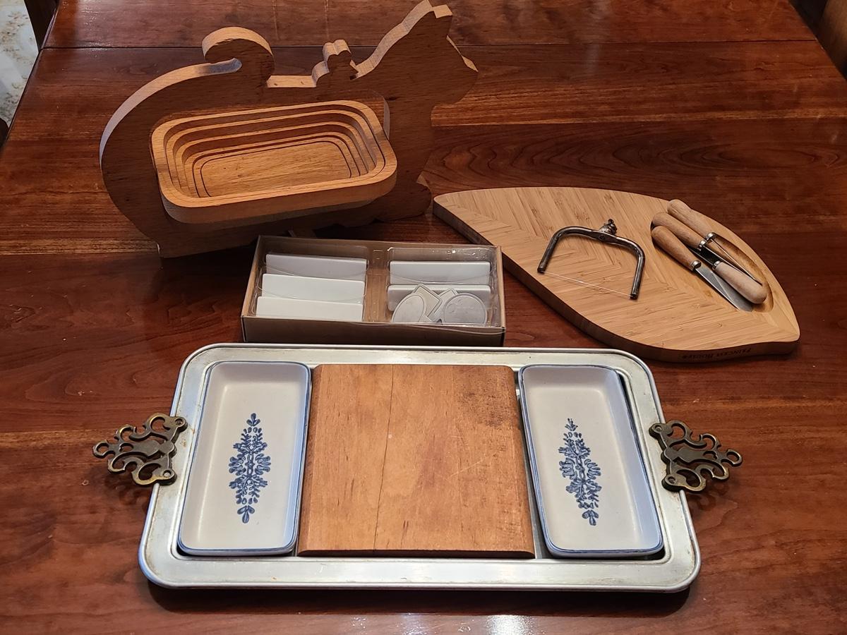 Lot 303: Charcuterie Boards, Cat/Mouse Basket, Squirrel Cheese Cutter and More