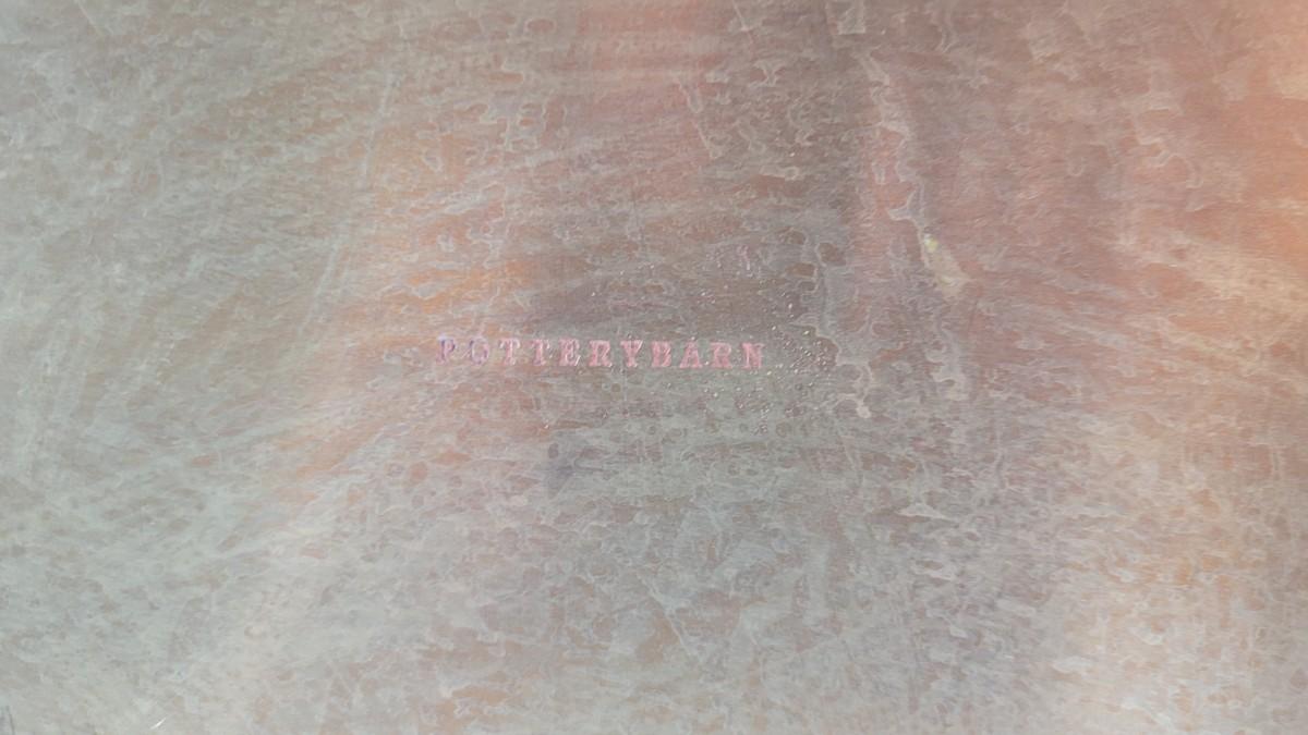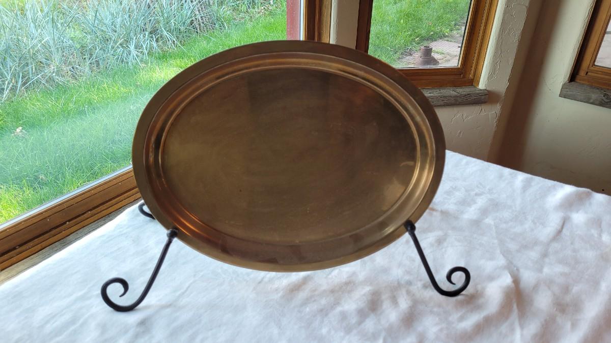 Lot 303: Pottery Barn Brass Tray and Hinged Stand