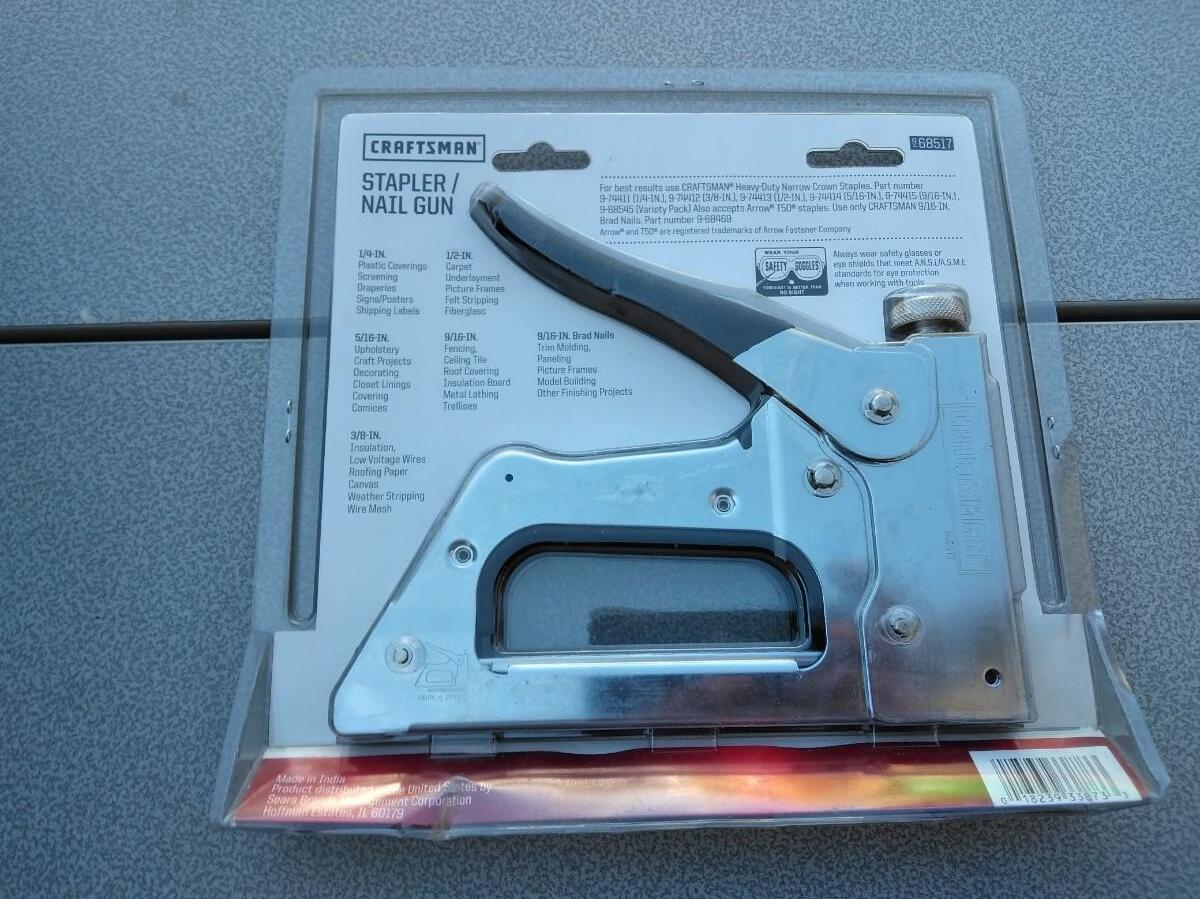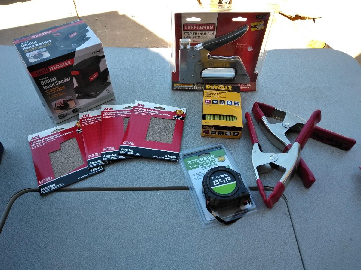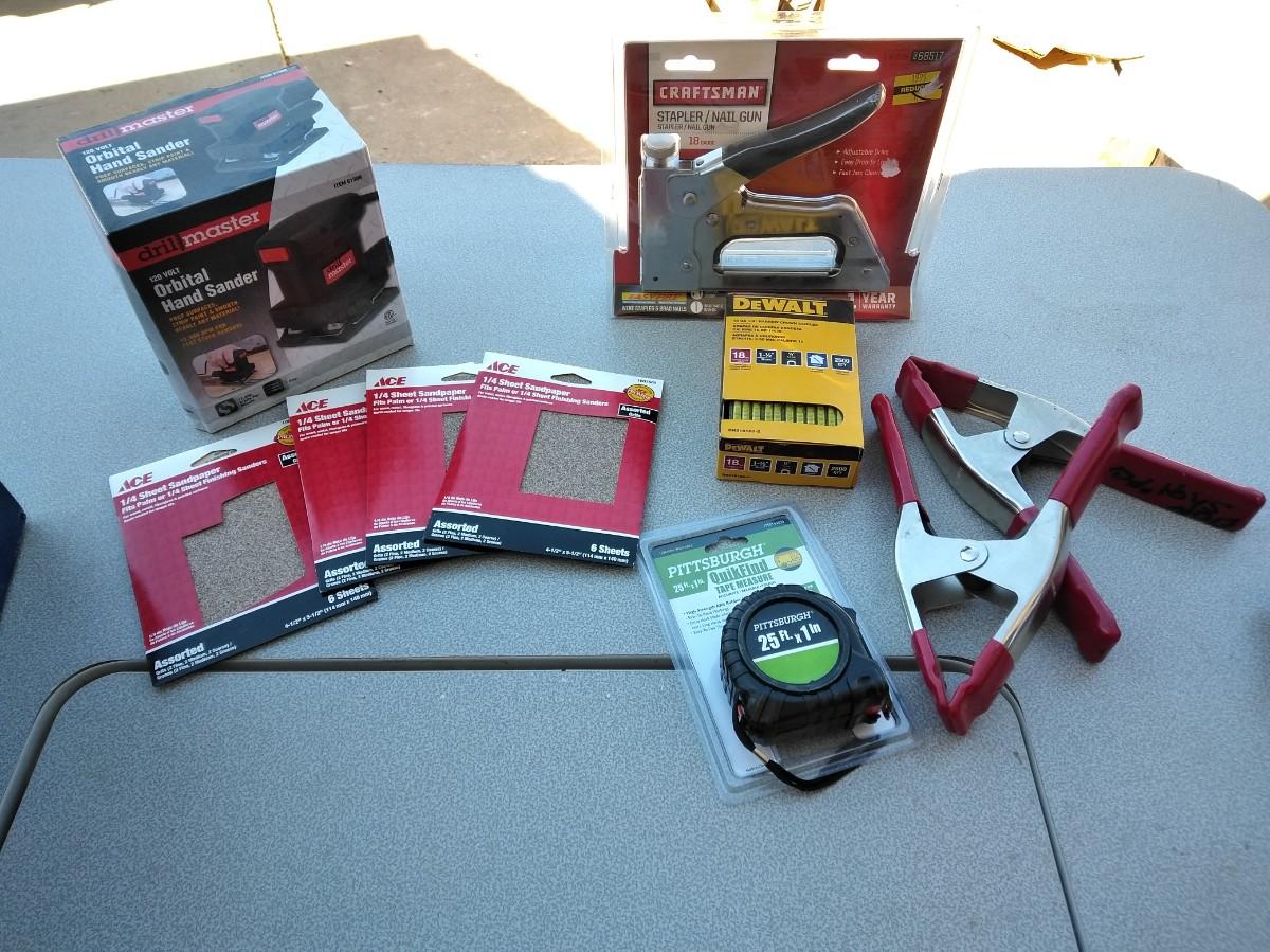 LOT 303 NEW STAPLE/NAIL GUN, HAND SANDER, SANDPAPER AND MORE