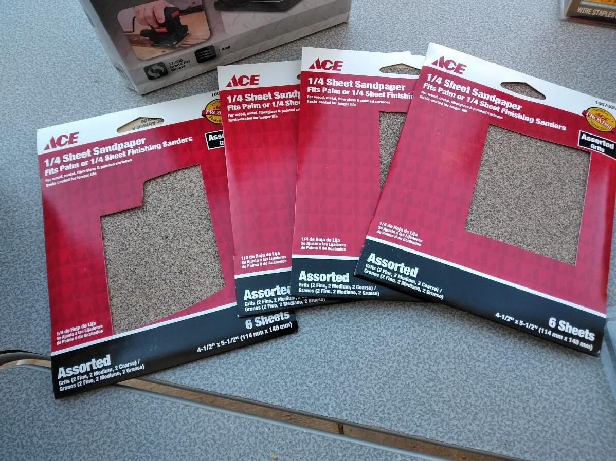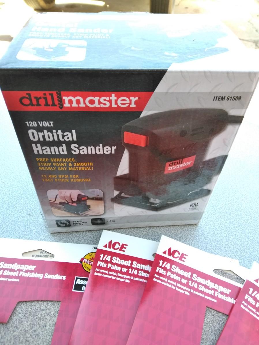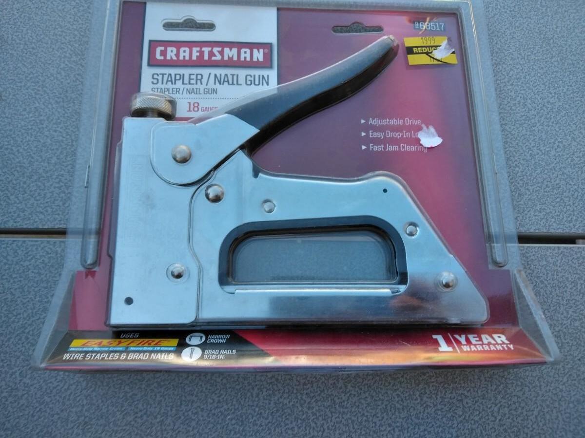 LOT 303 NEW STAPLE/NAIL GUN, HAND SANDER, SANDPAPER AND MORE