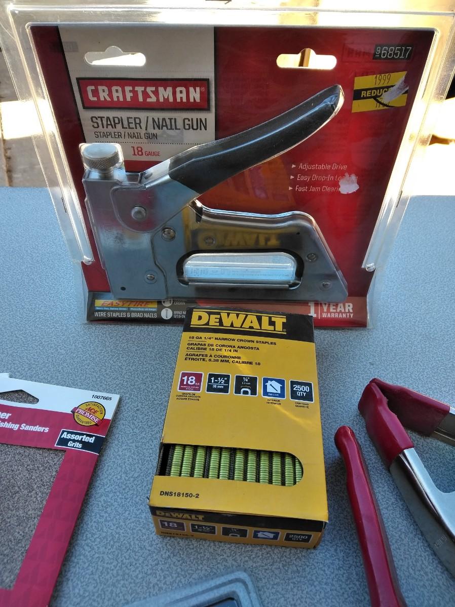 LARGE SPRING CLAMPS, TAPE MEASURE, 18 GA STAPLES