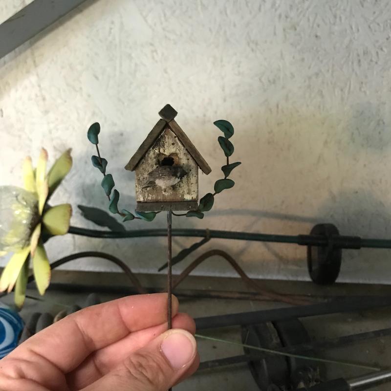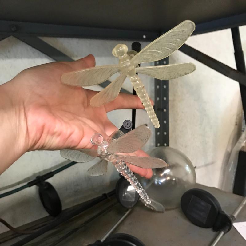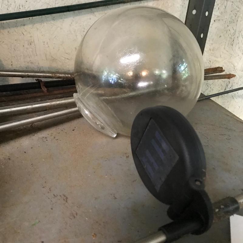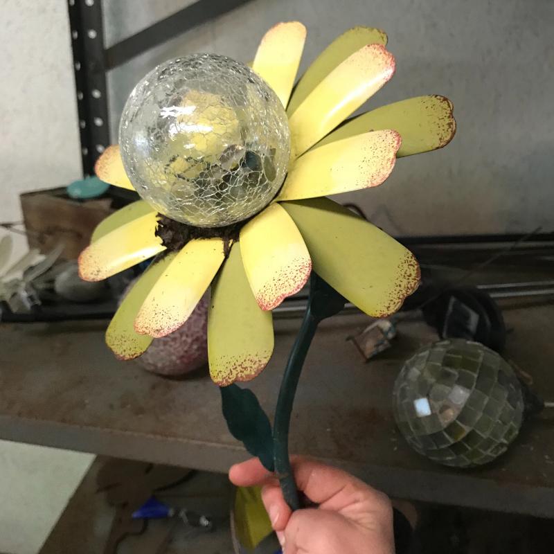 Awesome lot to add some color to your outdoor living areas! Dragonfly, pink hued bulb, green hued bulb and yellow flower bulb all have solar light receivers, although working condition is unknown. Lot also includes bird houses, stain glass art, a metal bird bath bowl (stand not included) and more! See photos for all items. All poles photographed are metal with the exception of the fireflies, those poles are metal on the bottom and plastic from the solar panel to the firefly. Local pick up only.