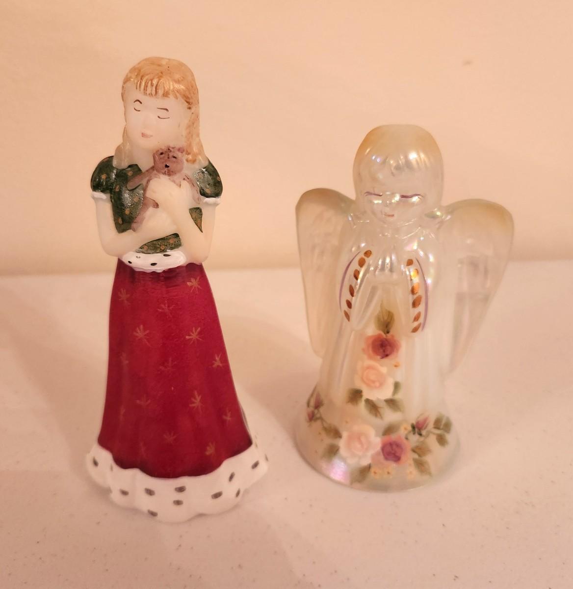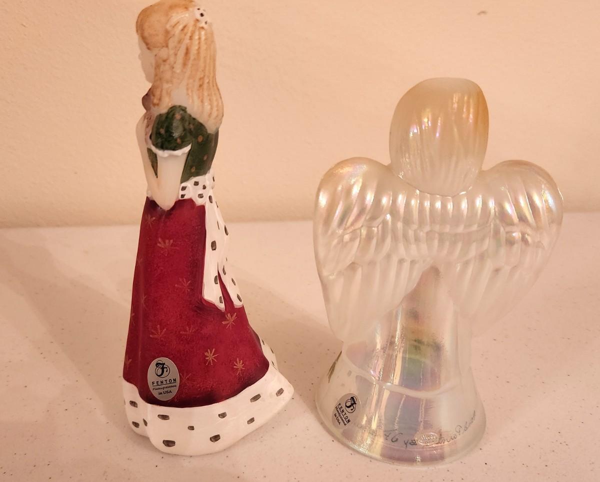 Lot #303 Fenton "Little Sister" figurine and Iridescent Angel Figure