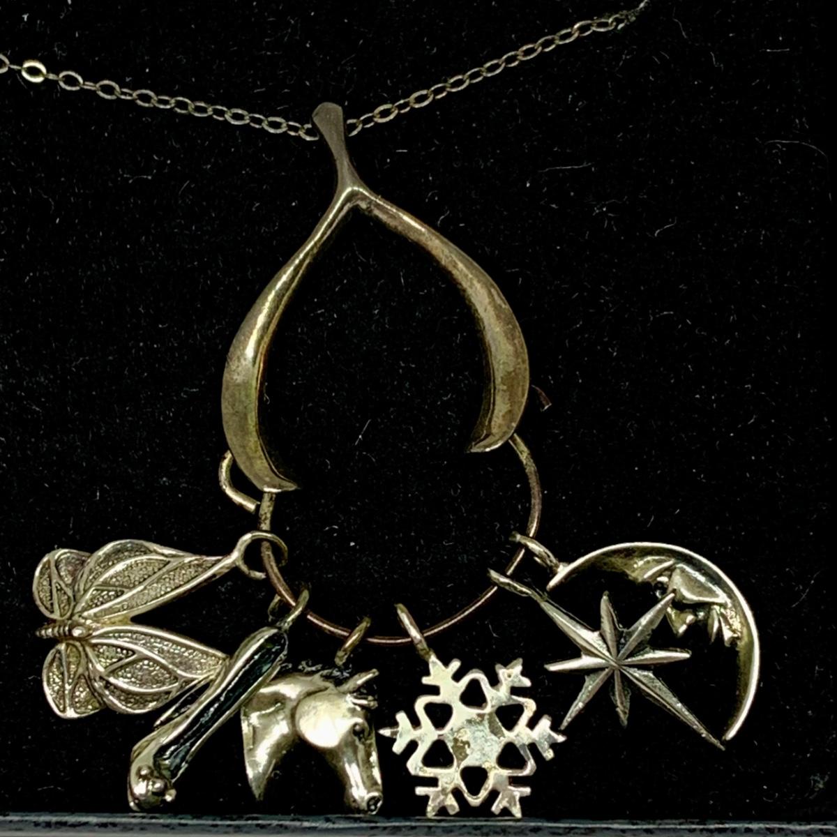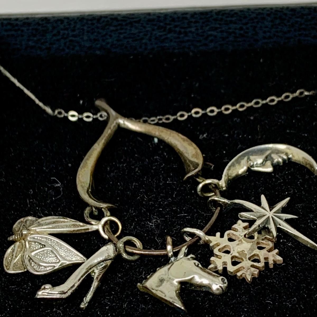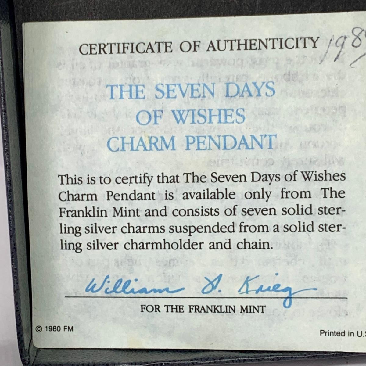 Lot 303: Franklin Mint - The Seven Days of Wishes Sterling Silver Charms and Wishbone Charm Holder and Chain and COA