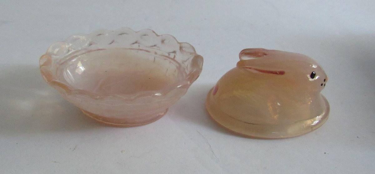 Lot 303: Older Boyd Glass Hand Painted Covered Bunny Salt
