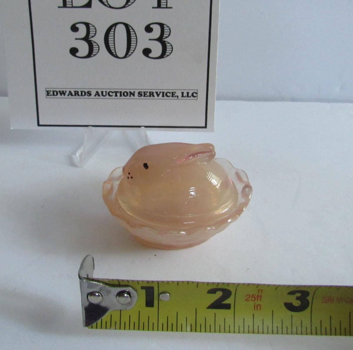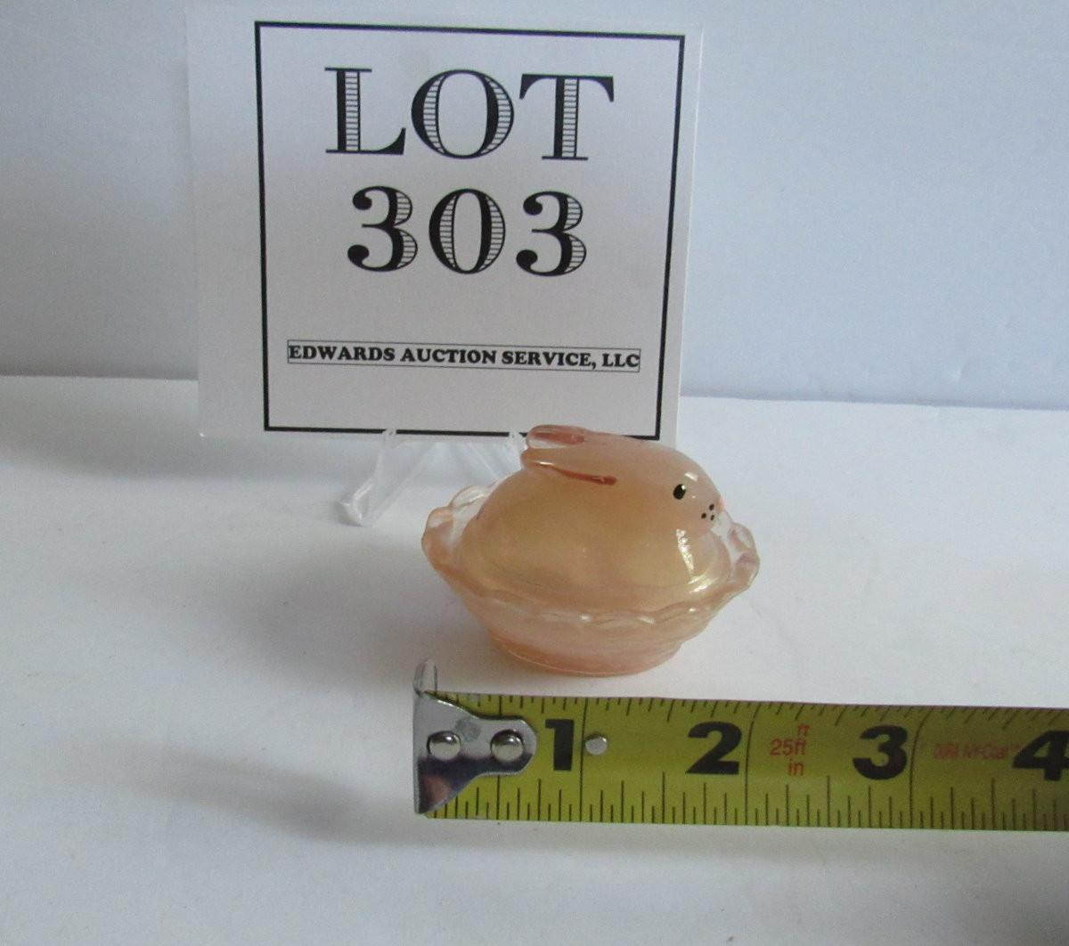 Lot 303:  Older Boyd Glass Hand Painted Covered Bunny Salt