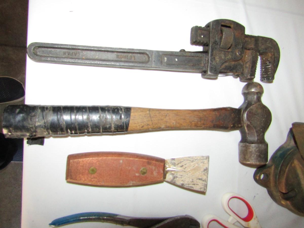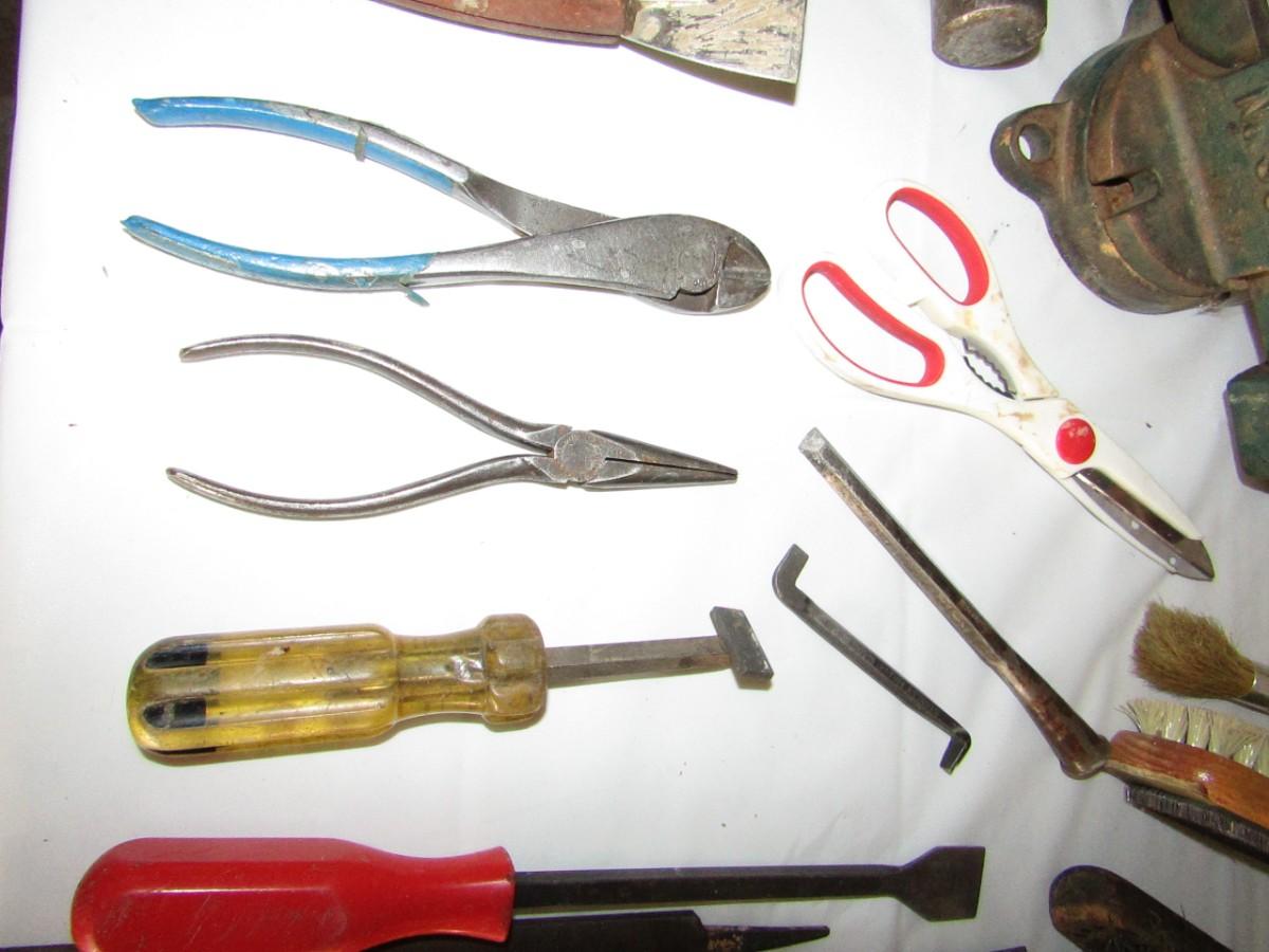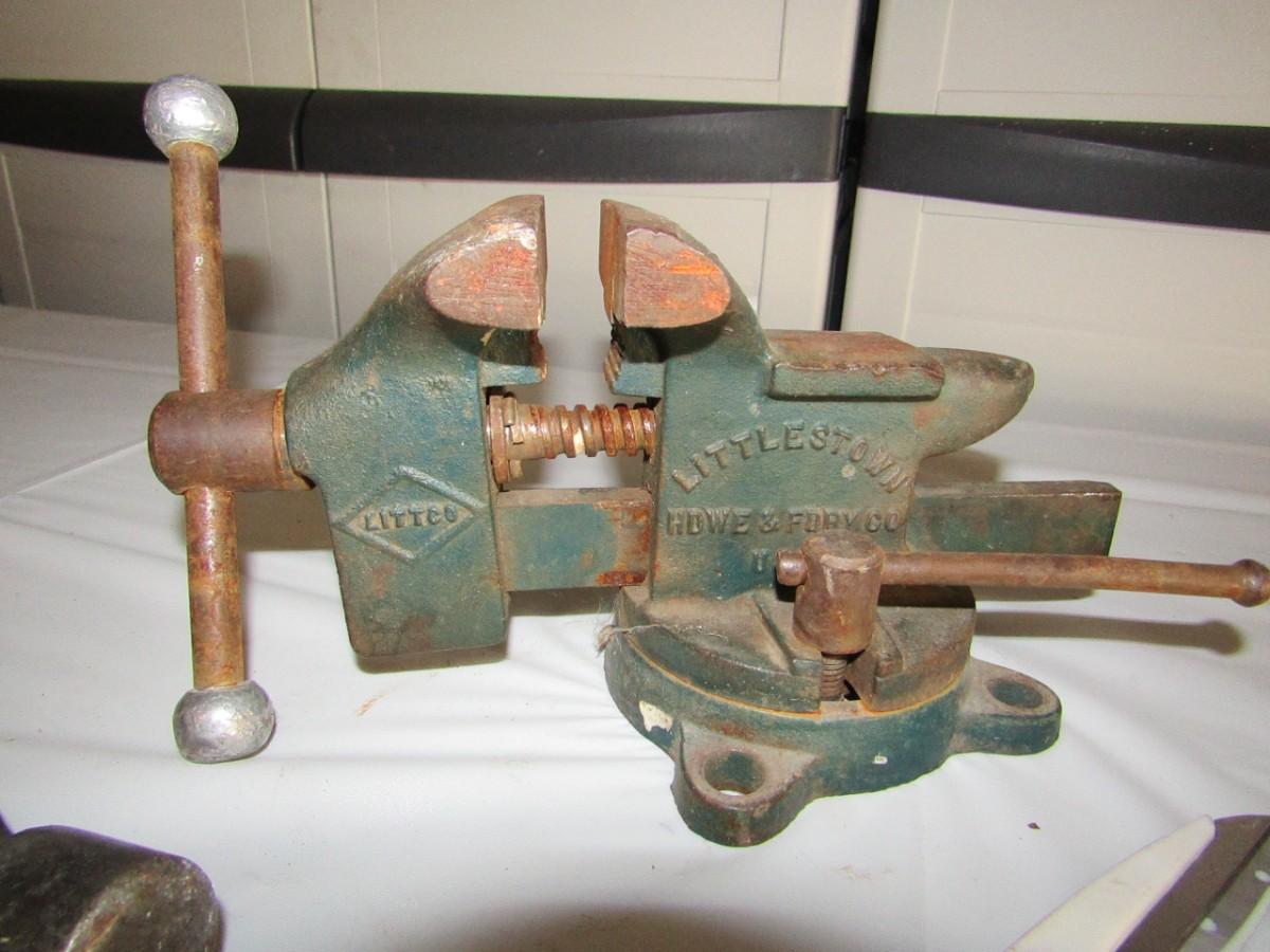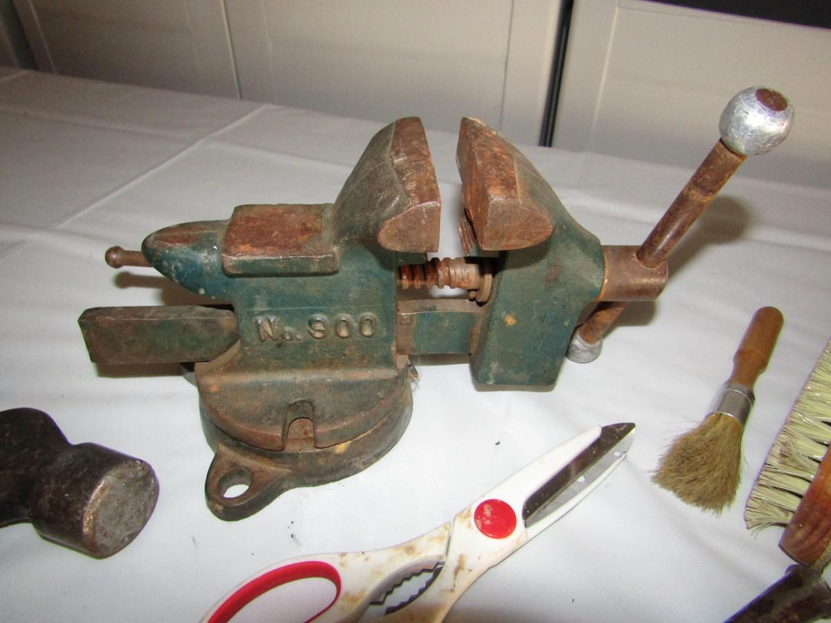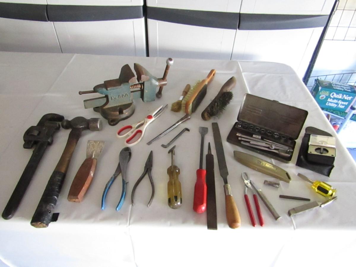 VARIETY OF HAND TOOLS AND A SMALL VISE