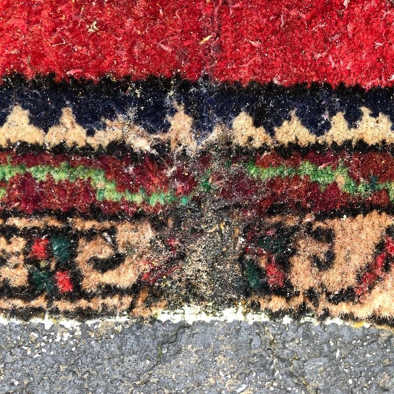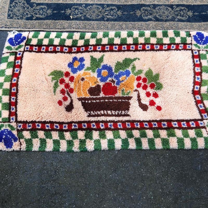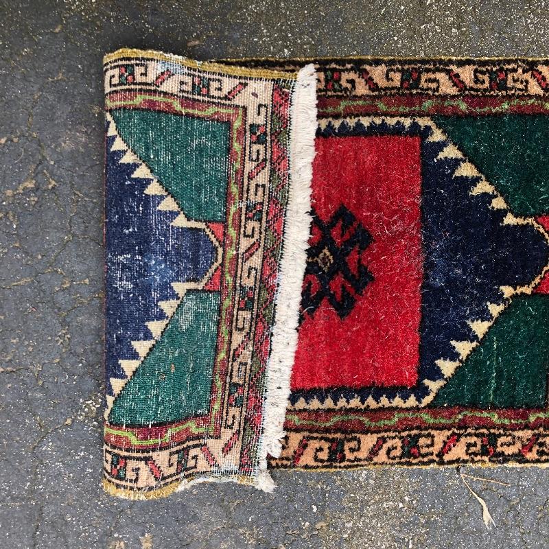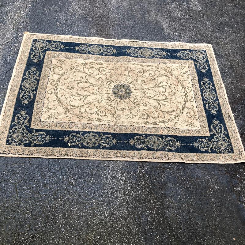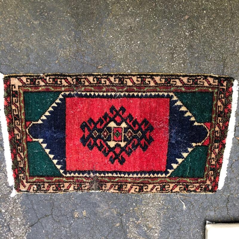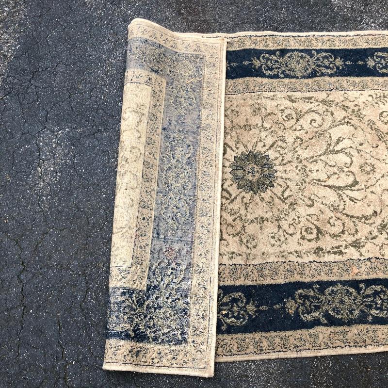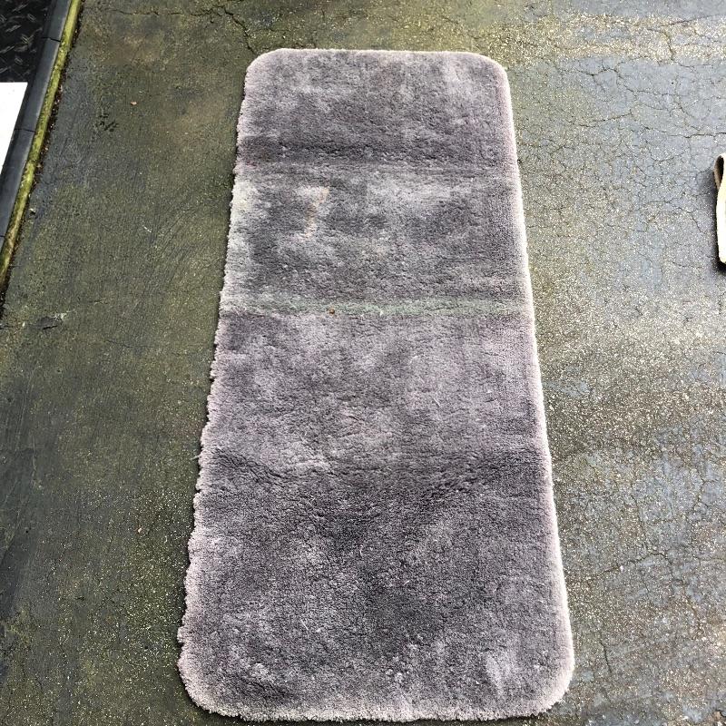 An assortment of both indoor and out door rugs in this useful lot. 3 outdoor doormats, a large grey bath mat (Just needs a good wash), are accompanied by 5 indoor rugs; these include a blue rag rug, two small rugs, (see in images the areas of damage to the green and red rug), a wool rug and the largest rug which is a small area rug in tan and blue. Also included is a 2’ x 8’ rug grabber that is new and still in packaging.