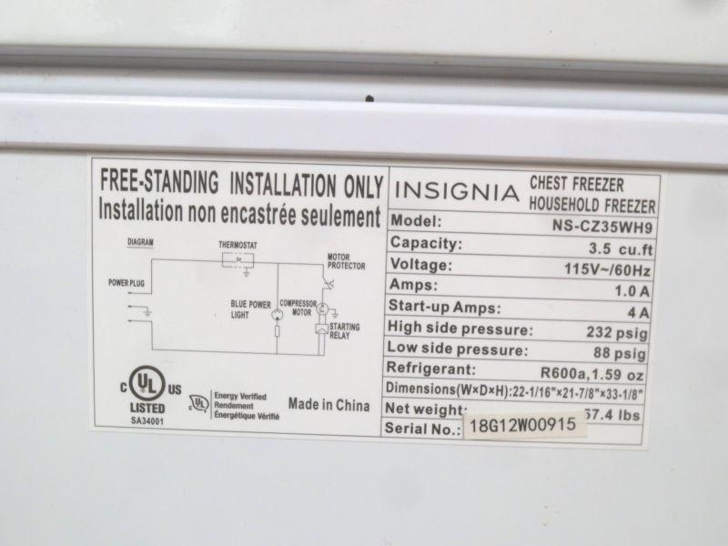 Lot 3035 - Insignia Chest Freezer 3 1/2 Cubic Feet