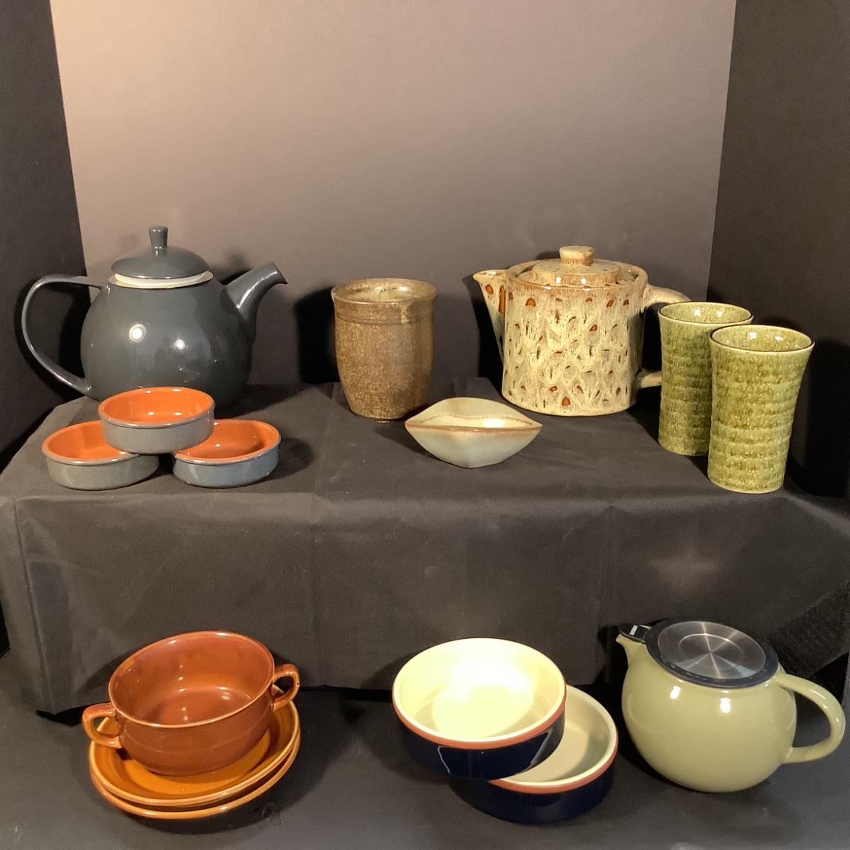 Lot of Beautiful Pottery ( 15 pcs ) total with one Scandinavian Hoganas teapot and two Forlife teapots