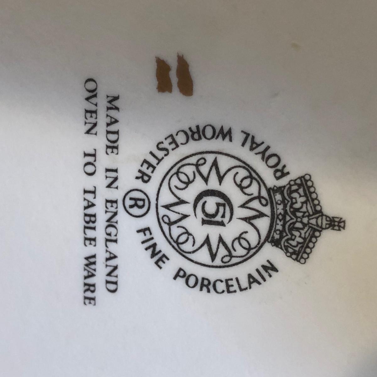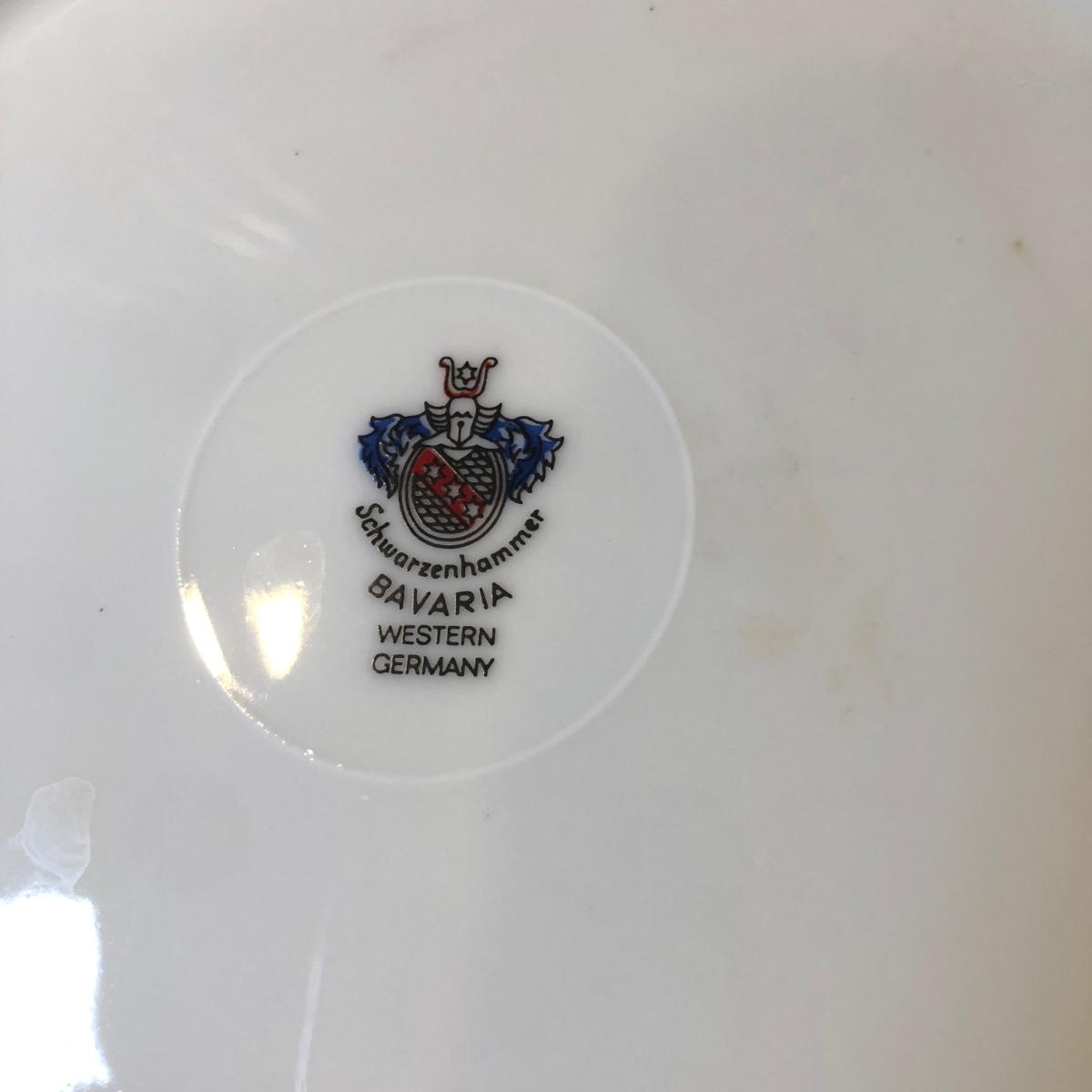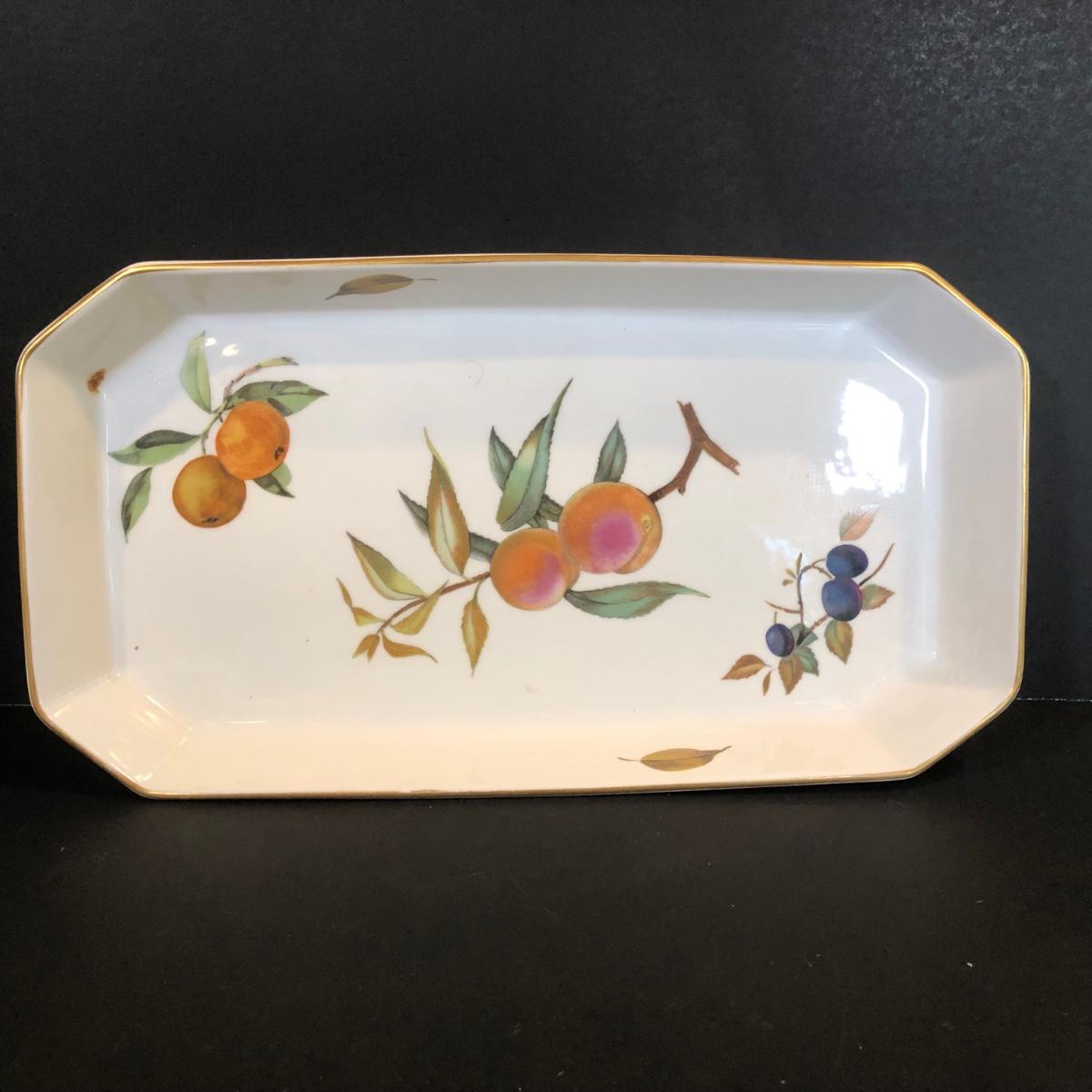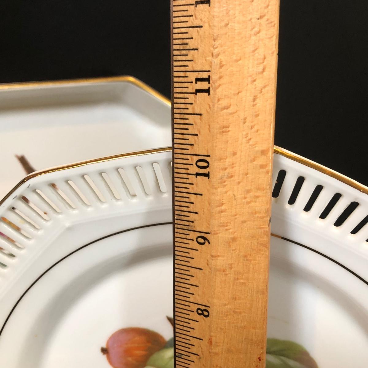 LOT 303K: 12 Vintage Schwarzenhammer Bavaria Fruit Cutout 7" Dessert Plates. 4 Matching 10" Dinner Plates & Royal Worcester Porcelain Tray
