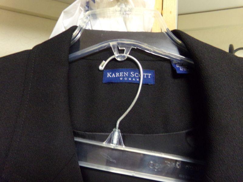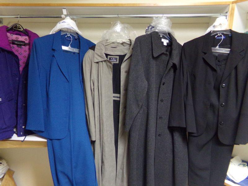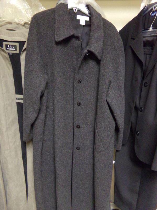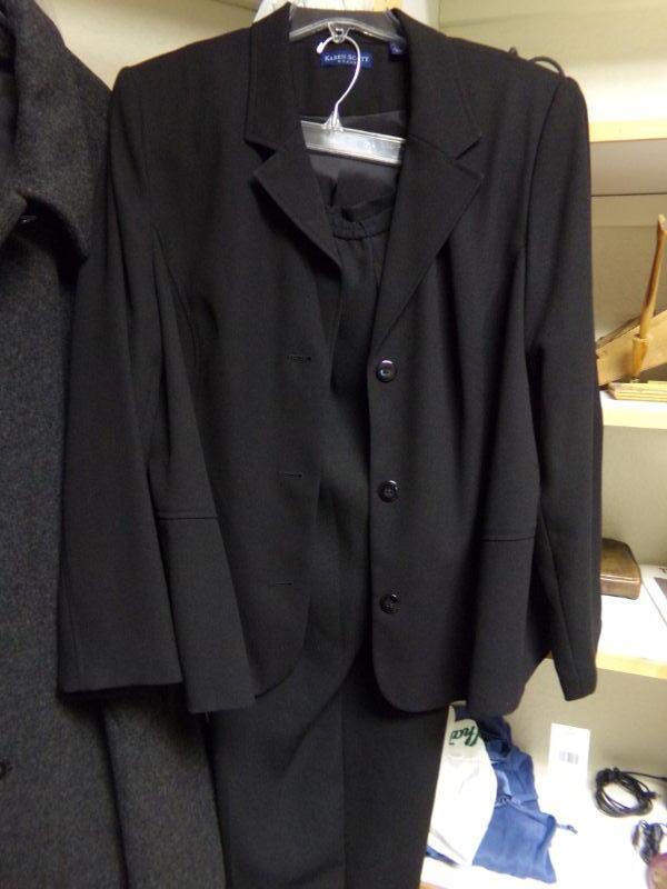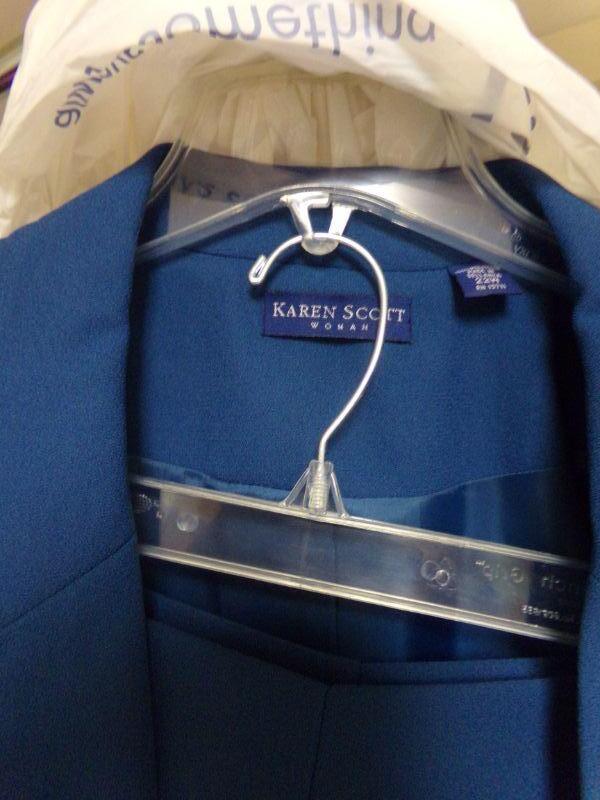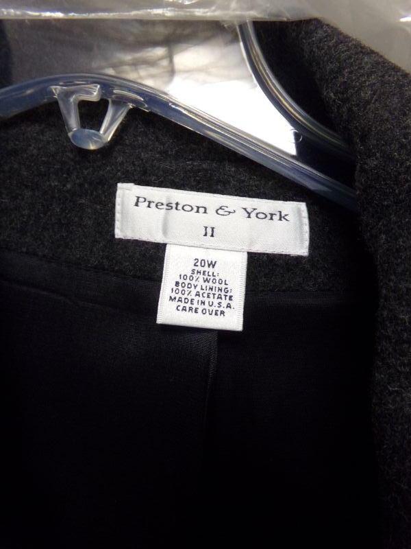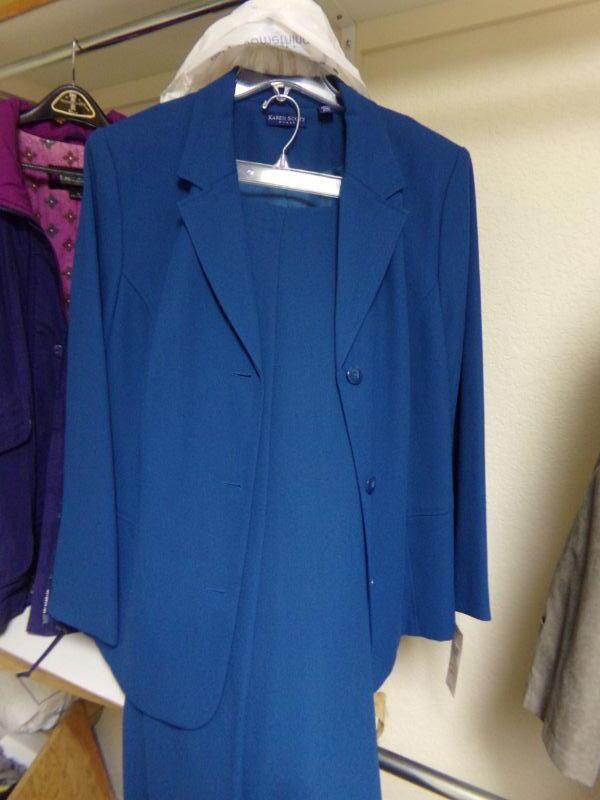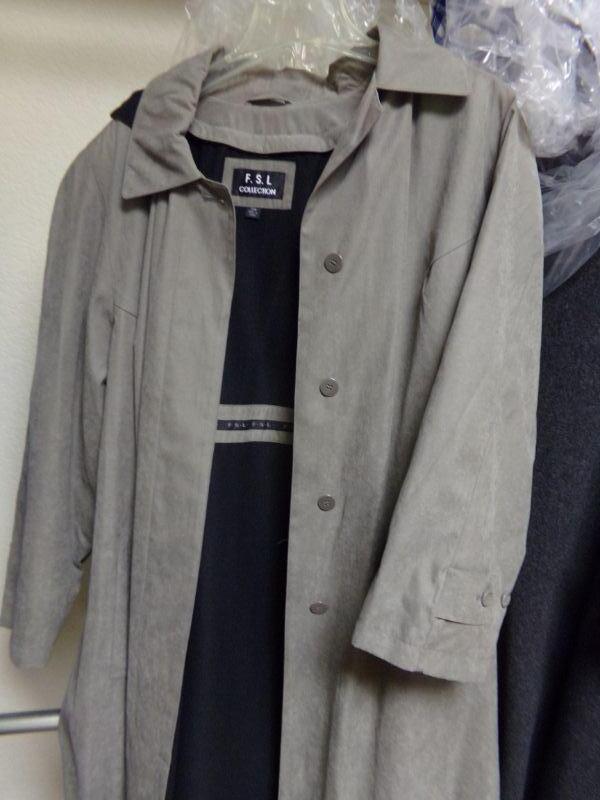 WOMENS SZ 20-22, YORK-PRESTON-TRENCH COAT, KAREN SCOTT: BLUE TRENCH & SUIT W/ TROUSERS, FSL-LT GREY TRENCH, PASIFIC-PLUM COLOR COAT SZ XL