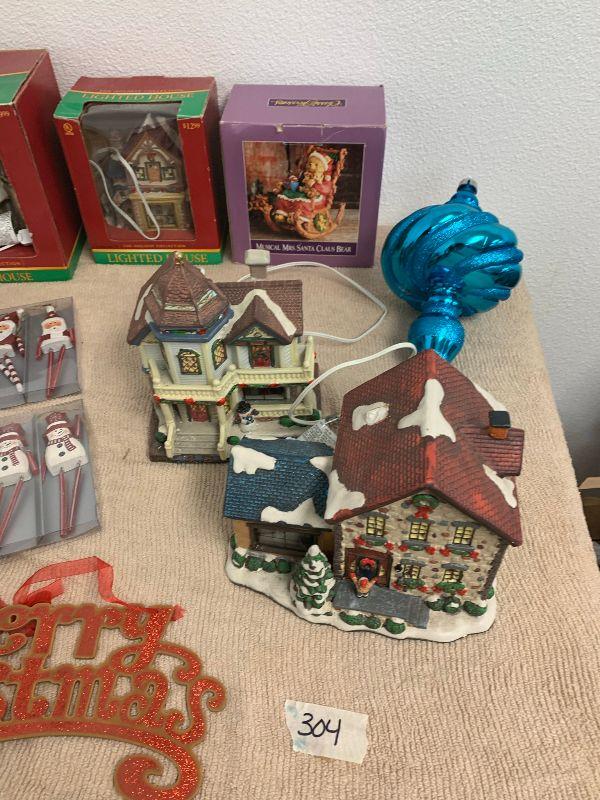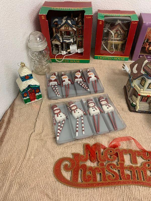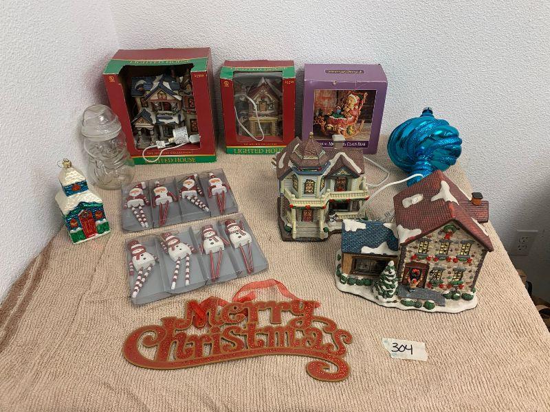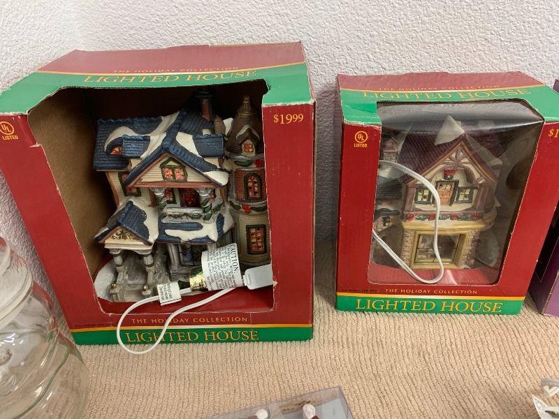 X-mas: 4 holiday light up houses, sign, glass snowman, and more..