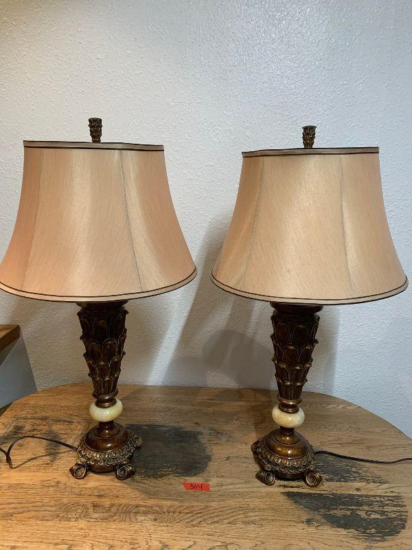 2 Nice lamps with 2 bulbs each. Listed lamps with marble