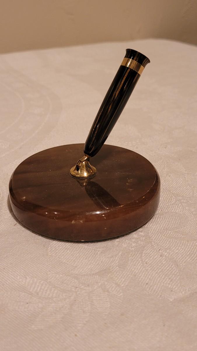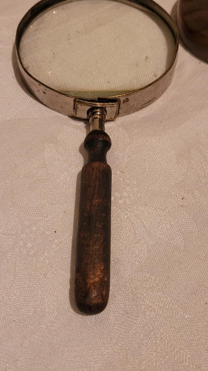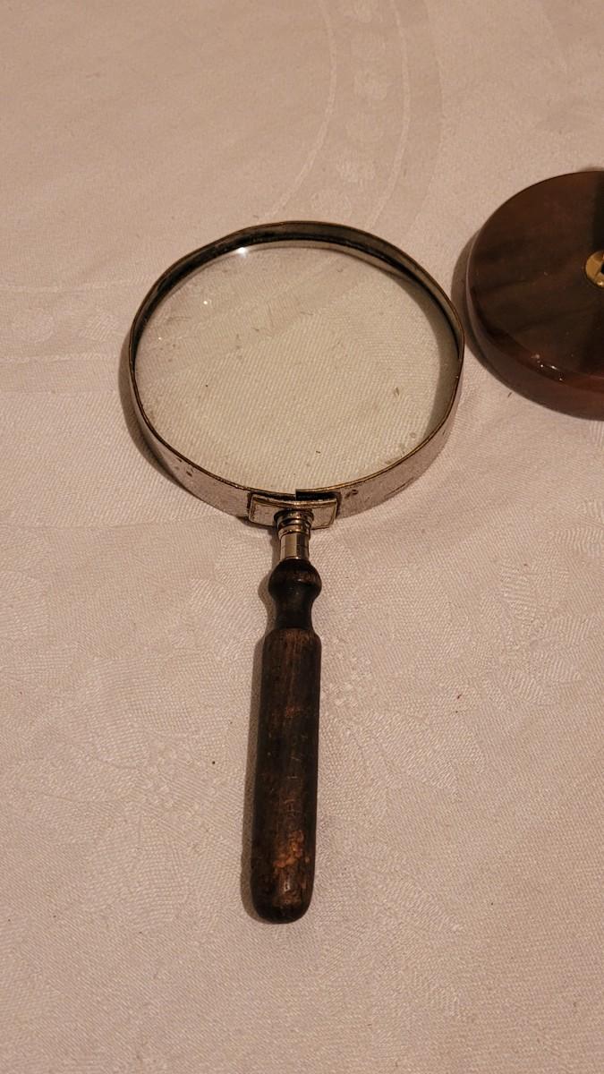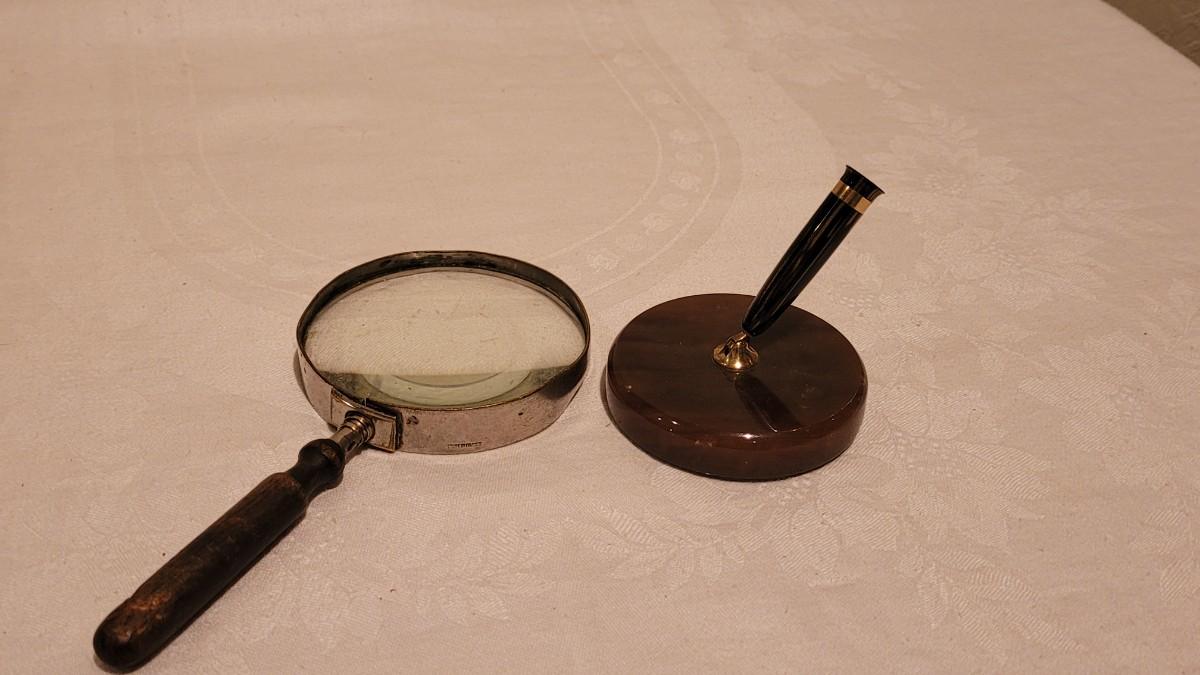 Lot 304: Vintage Wood Handle Magnifier and Marble Pen Holder