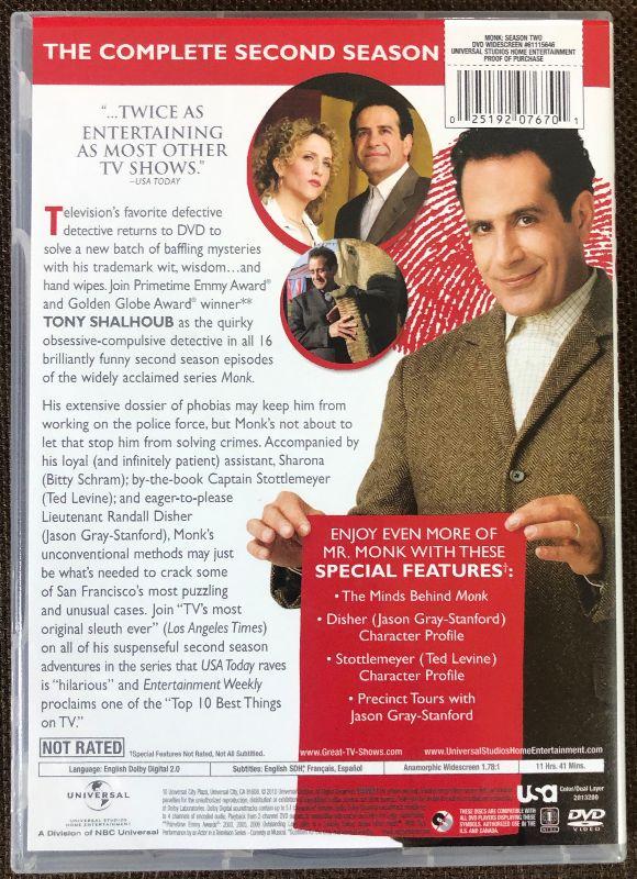 Lot #304 DVD MONK Complete Second Season Two 2 Free Shipping ! Tony Shalhoub