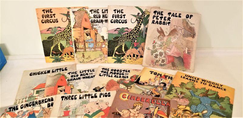 These 15 books were published by Platt & Munk between 1915 and 1939. Includes Uncle Wiggley, Tom Thumb, Cinderella, Chicken Little, and many others. Each measures 8" x 7". Good vintage condition. These retail for around $10.00 each.