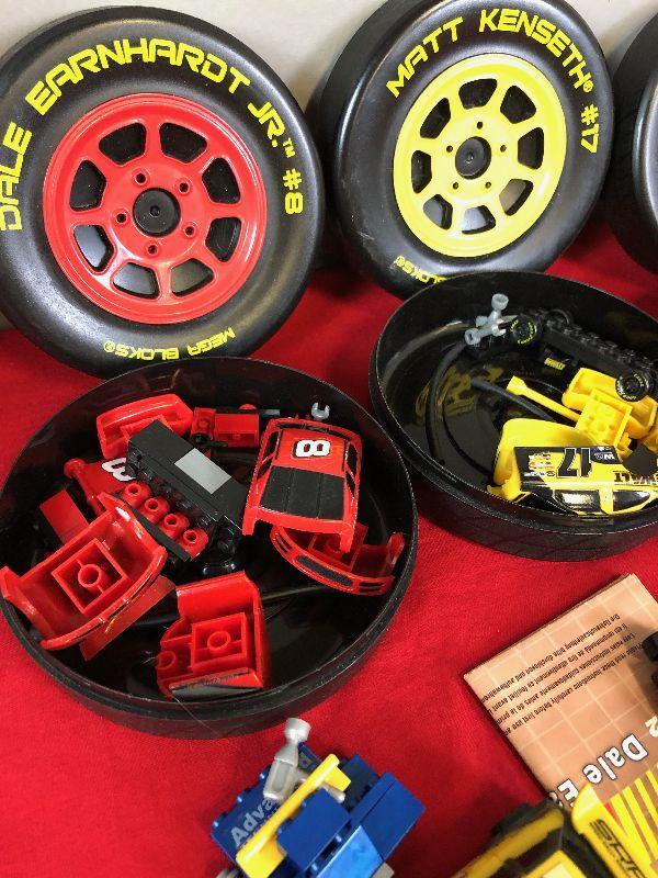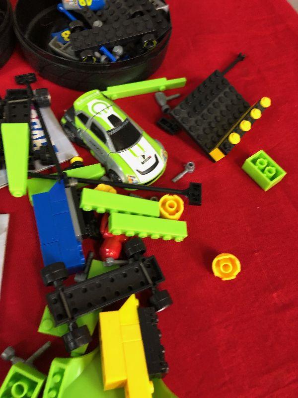 Several mini race cars plus pieces in original cases MEGABLOKS