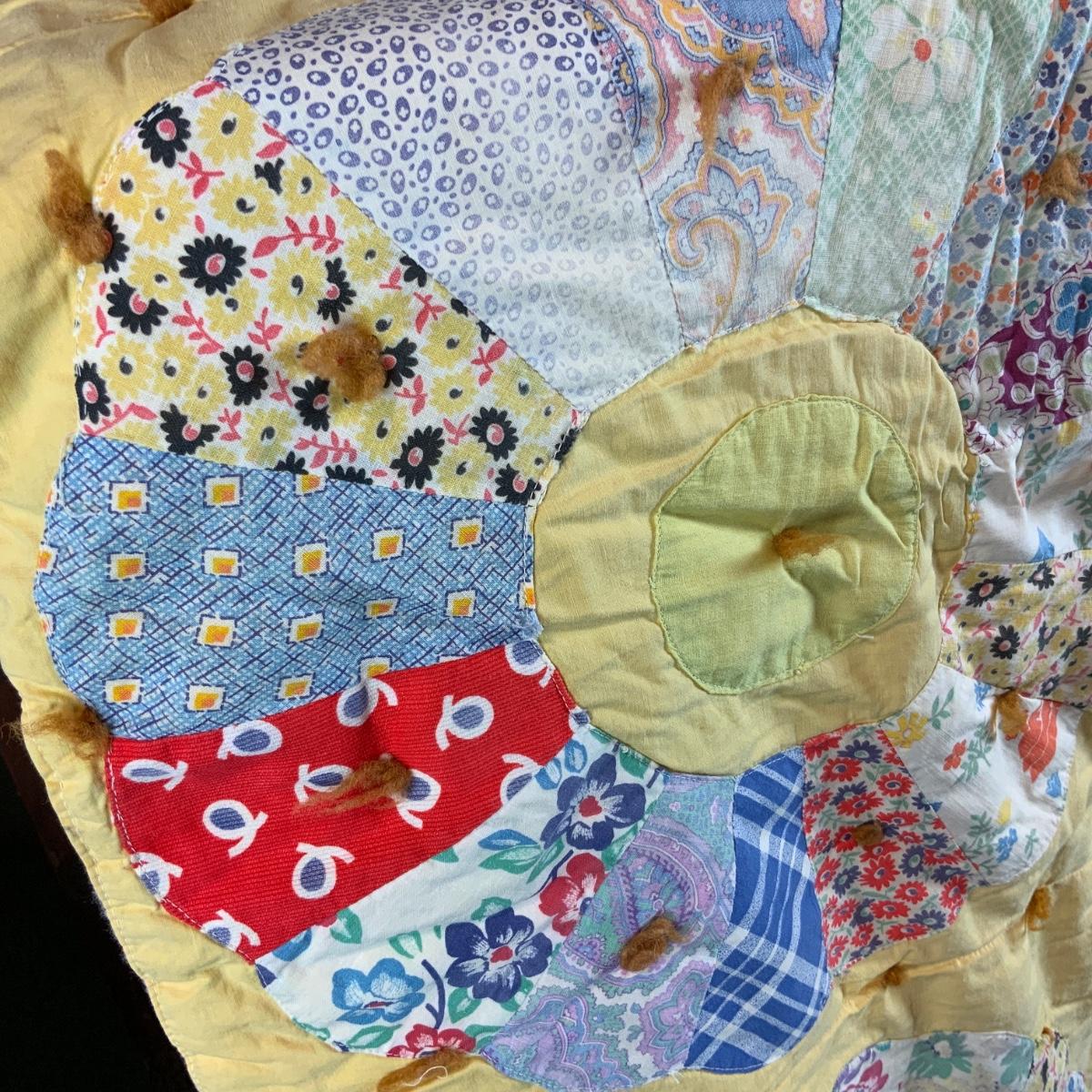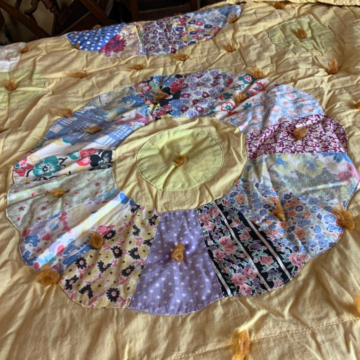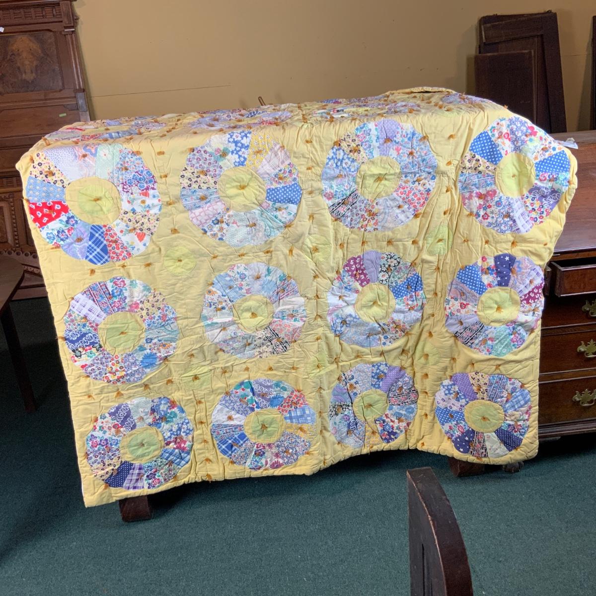 Yellow Dresden Star Quilt. Great condition. Looks cozy! //::\\ Please see photos for details and condition. No attempt has been made to hide any imperfections. All items listed in this auction are warehouse items, and need to be cleaned. A majority of the items need restoration as well. All items are sold AS IS and WITHOUT GUARANTEE. If you are uncertain about an item, DO NOT BID. Due to the nature of this online auction in-person inspection is HIGHLY recommended. All Sales are FINAL. Pick Up Times are FIRM. Please confirm with your own schedule that you can pick up in the scheduled times listed in the Terms and Conditions. Any questions please message the auctioneer. DO NOT Contact The Harp Gallery.