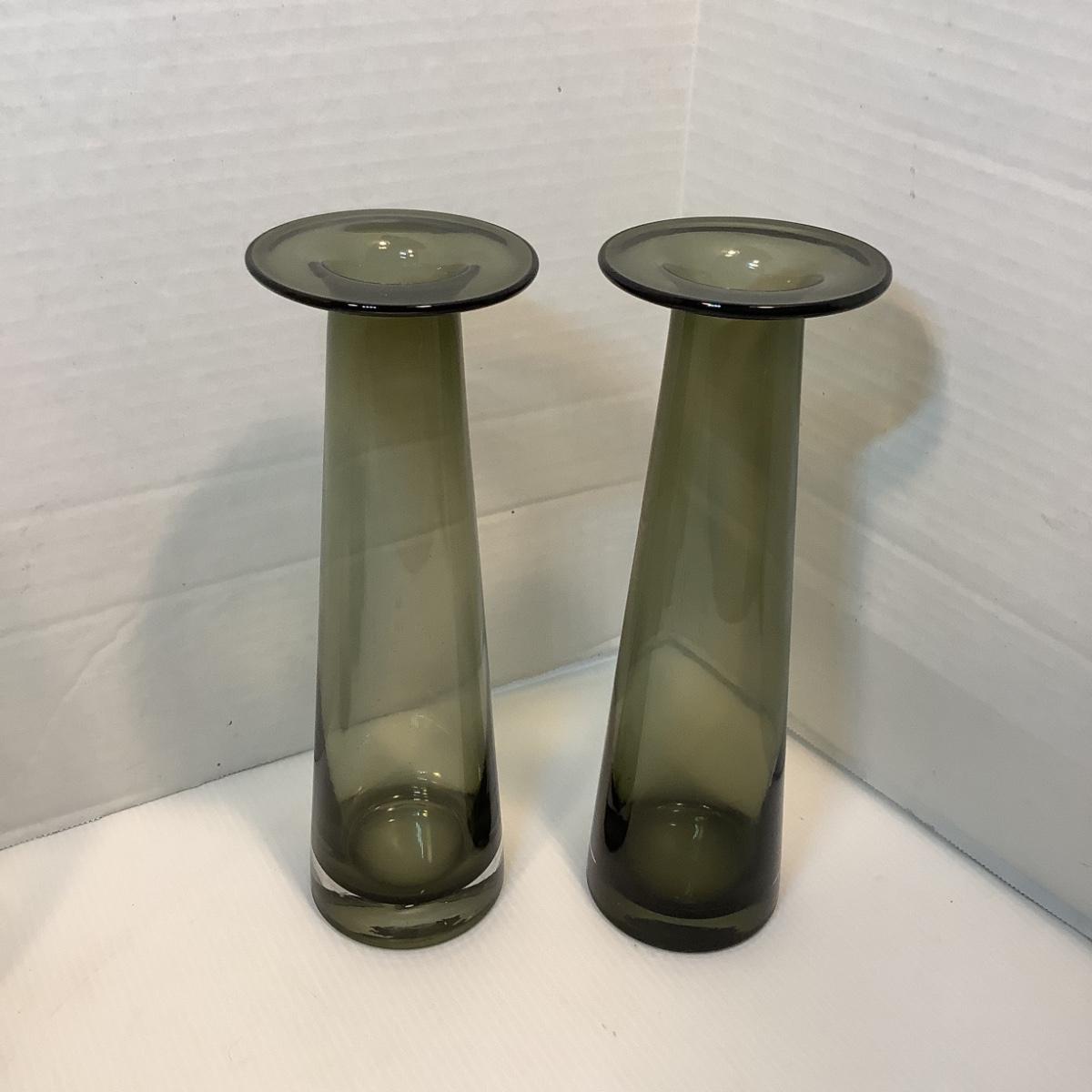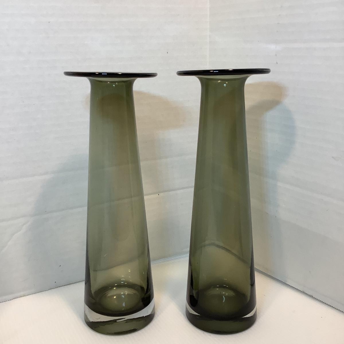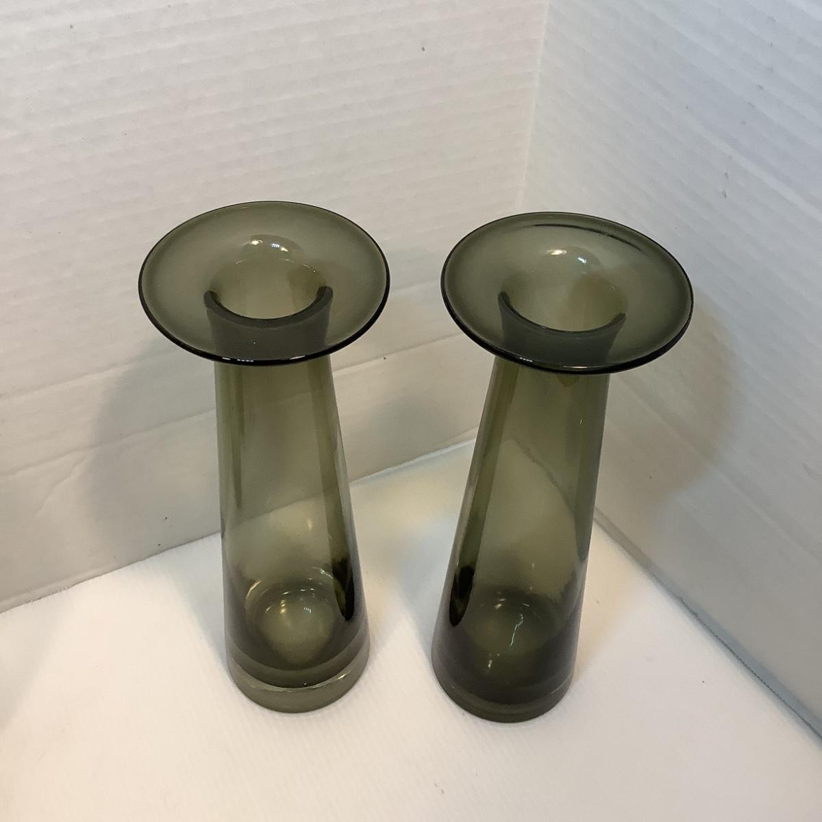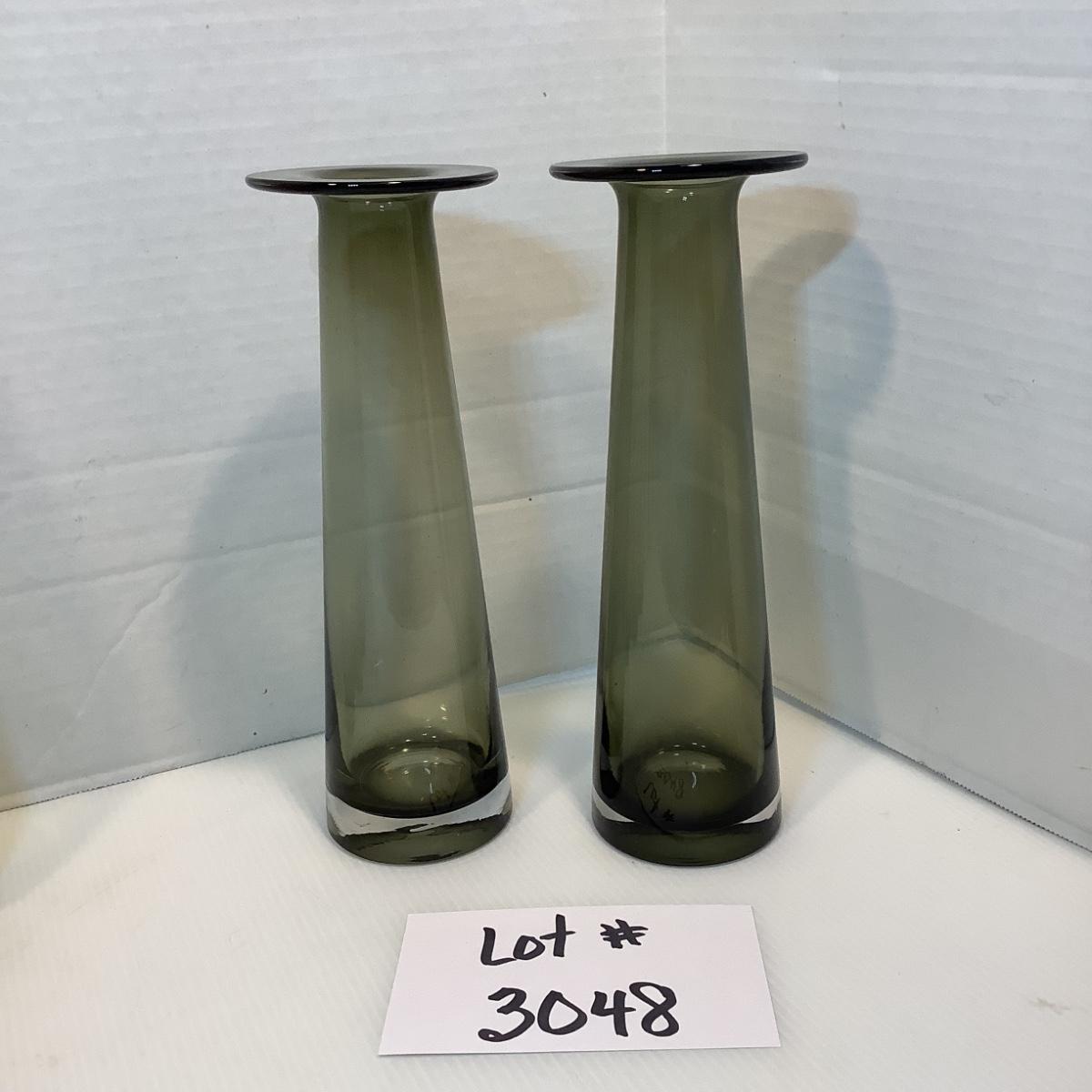 Lot 3048. Pair of Vintage 1960’s Mid-Century Modern Blenko Oversized Smokey Gray Hand Blown Glass Vases