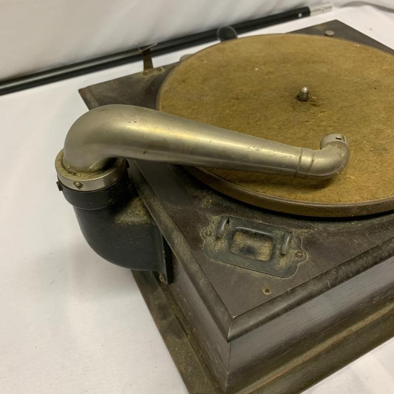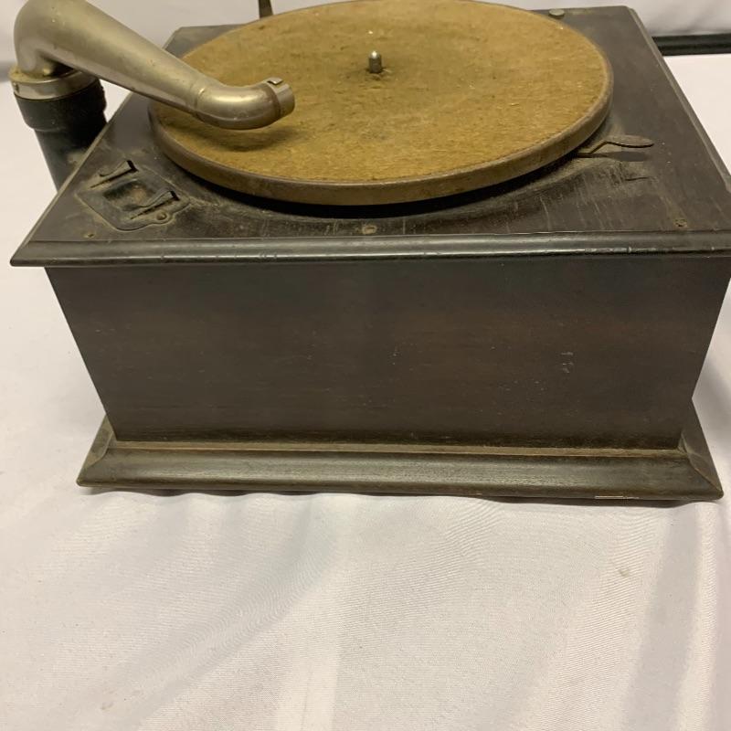 1920s table top Victrola phonograph. This little beauty is housed in a sturdy wooden box. The turntable spun when cranked. See pics to determine condition.
