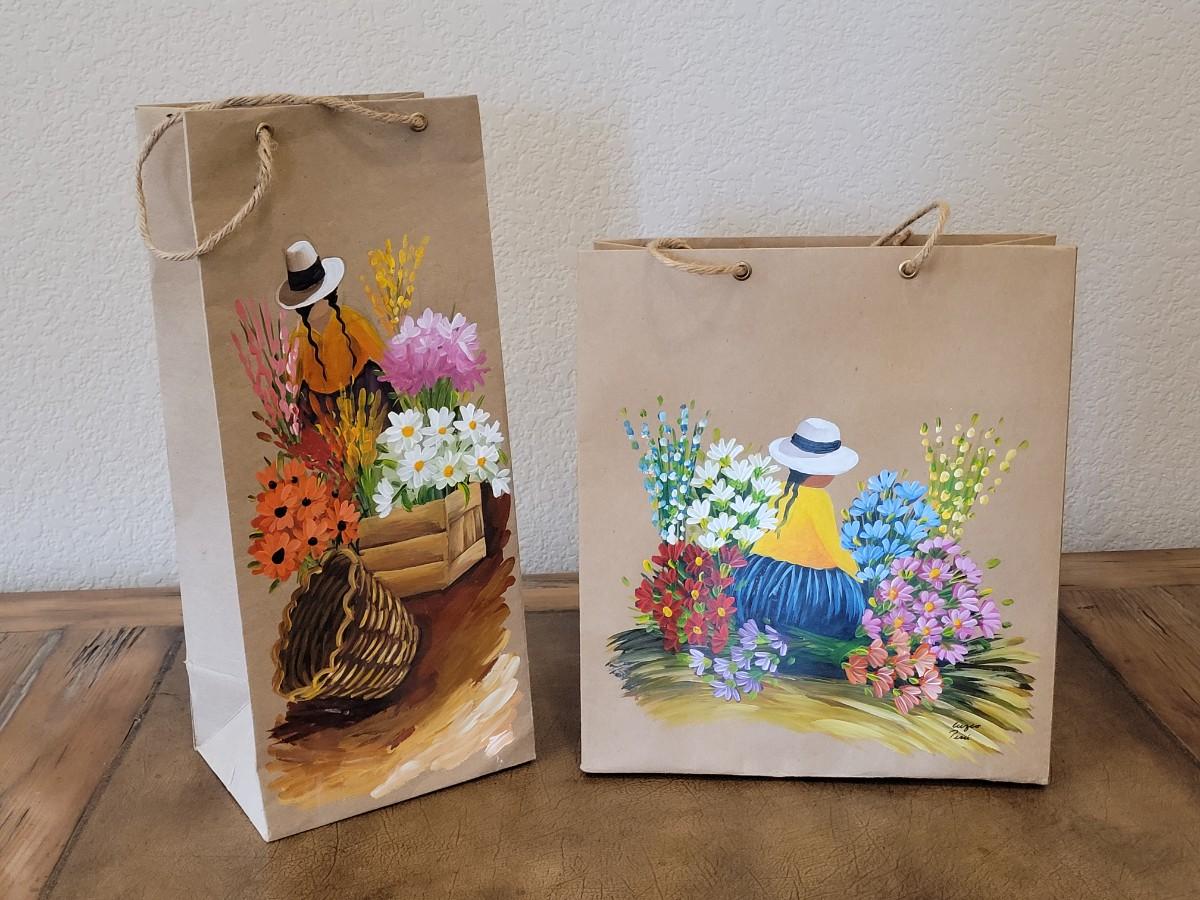 Lot 305: (2) Signed Handpainted Brown Paper Bags