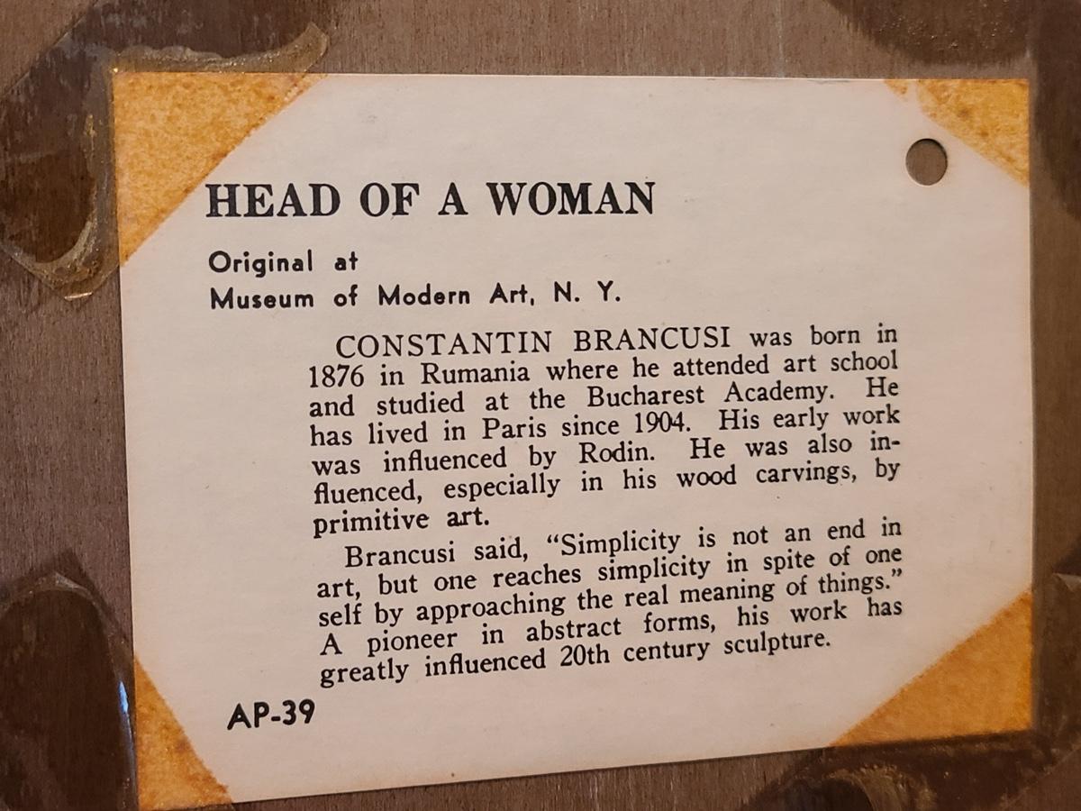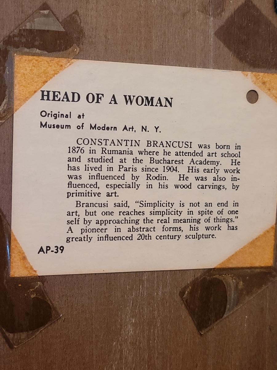Lot 305: MCM "Head of a Woman" by Brancusi (Vintage Austin Productions Sculpture)