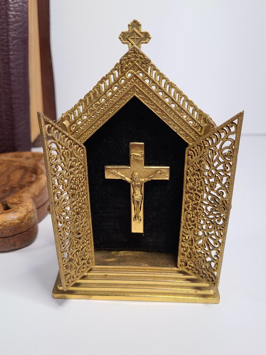 Lot 305: Religious Items: HTF Double Door, Filagree Crucifix and More